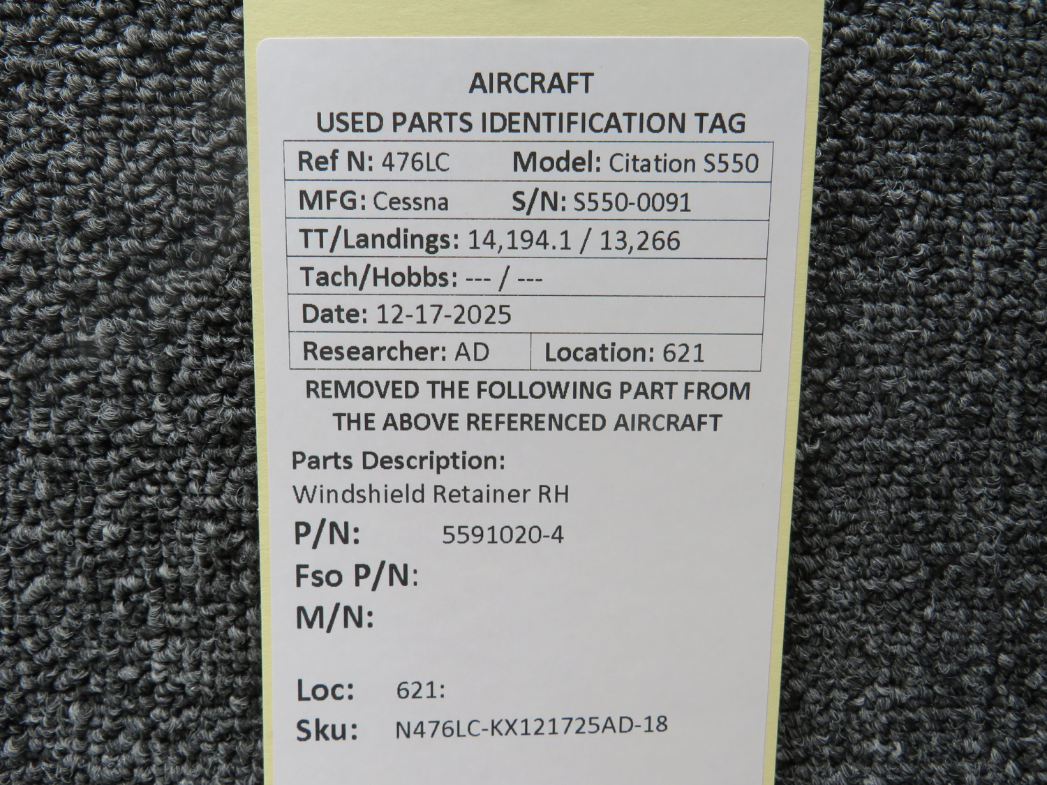 Every part is carefully inspected throughout our process and several times before it goes online. Most items are sold as-removed, just as they came off the aircraft. These parts are not functionally tested. What we do provide is clear photos, full traceability when available, pricing that reflects the as-removed condition, and a no-nonsense 90-day return window.