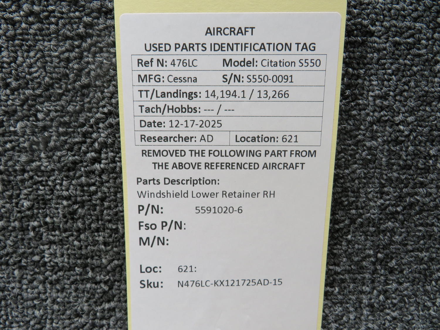 Unless specifically noted, most of our used airplane parts are sold in the condition they were removed, which means you should expect the usual signs of wear and tear.