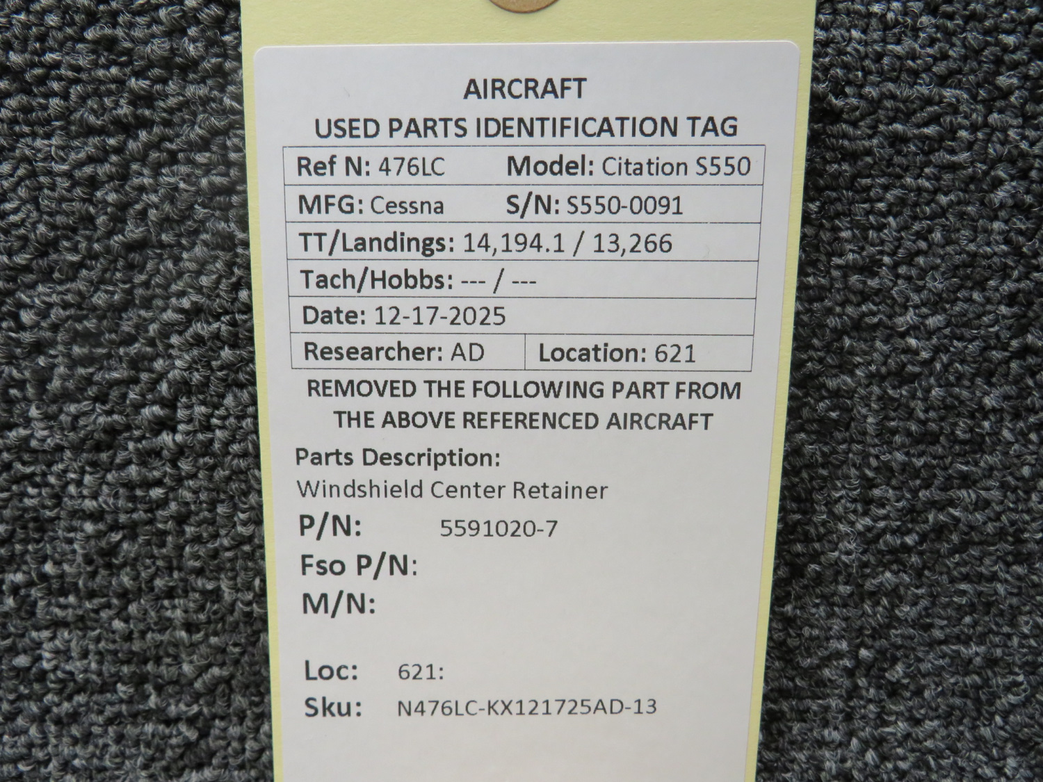 Unless specifically noted, most of our used airplane parts are sold in the condition they were removed, which means you should expect the usual signs of wear and tear.