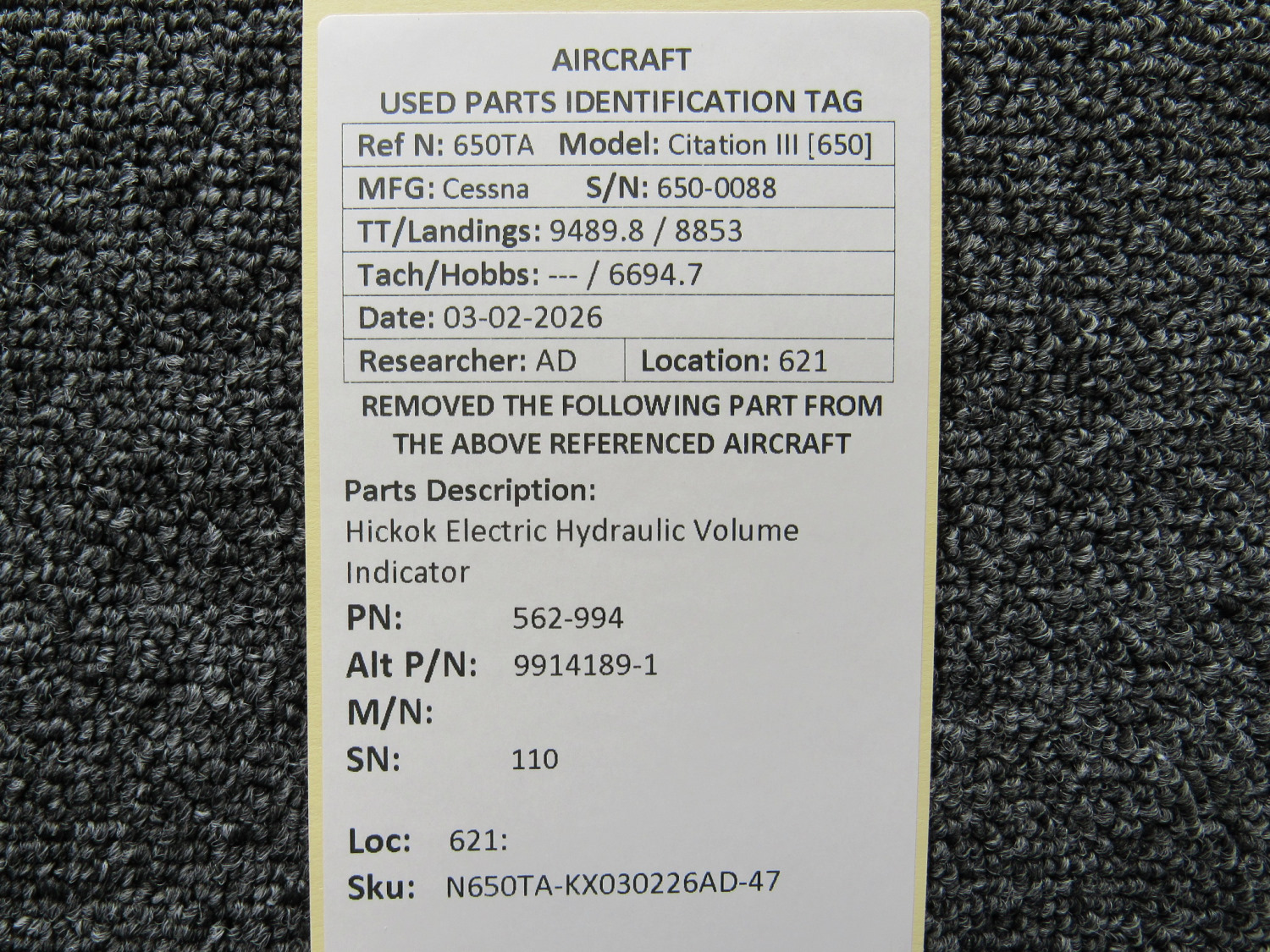 Every part is carefully inspected throughout our process and several times before it goes online. Most items are sold as-removed, just as they came off the aircraft. These parts are not functionally tested. What we do provide is clear photos, full traceability when available, pricing that reflects the as-removed condition, and a no-nonsense 90-day return window.