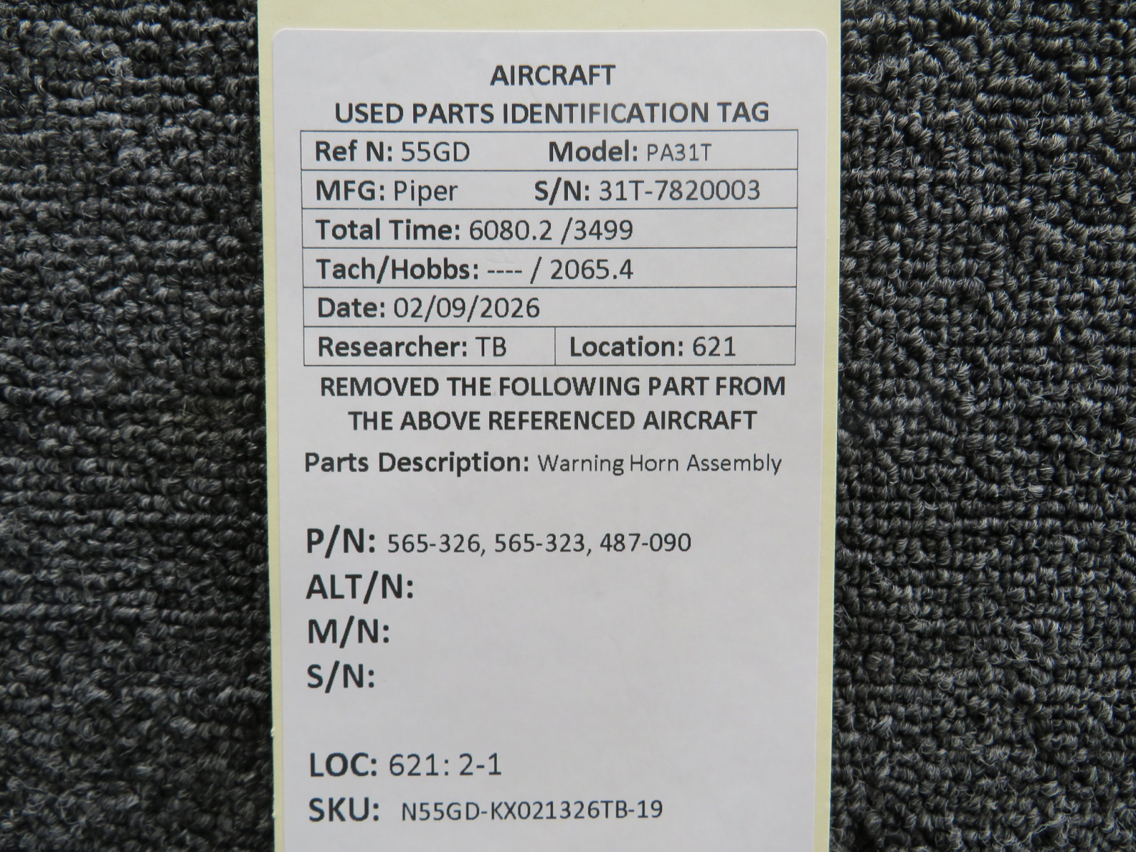 - Stall Warning Horn: 565-323