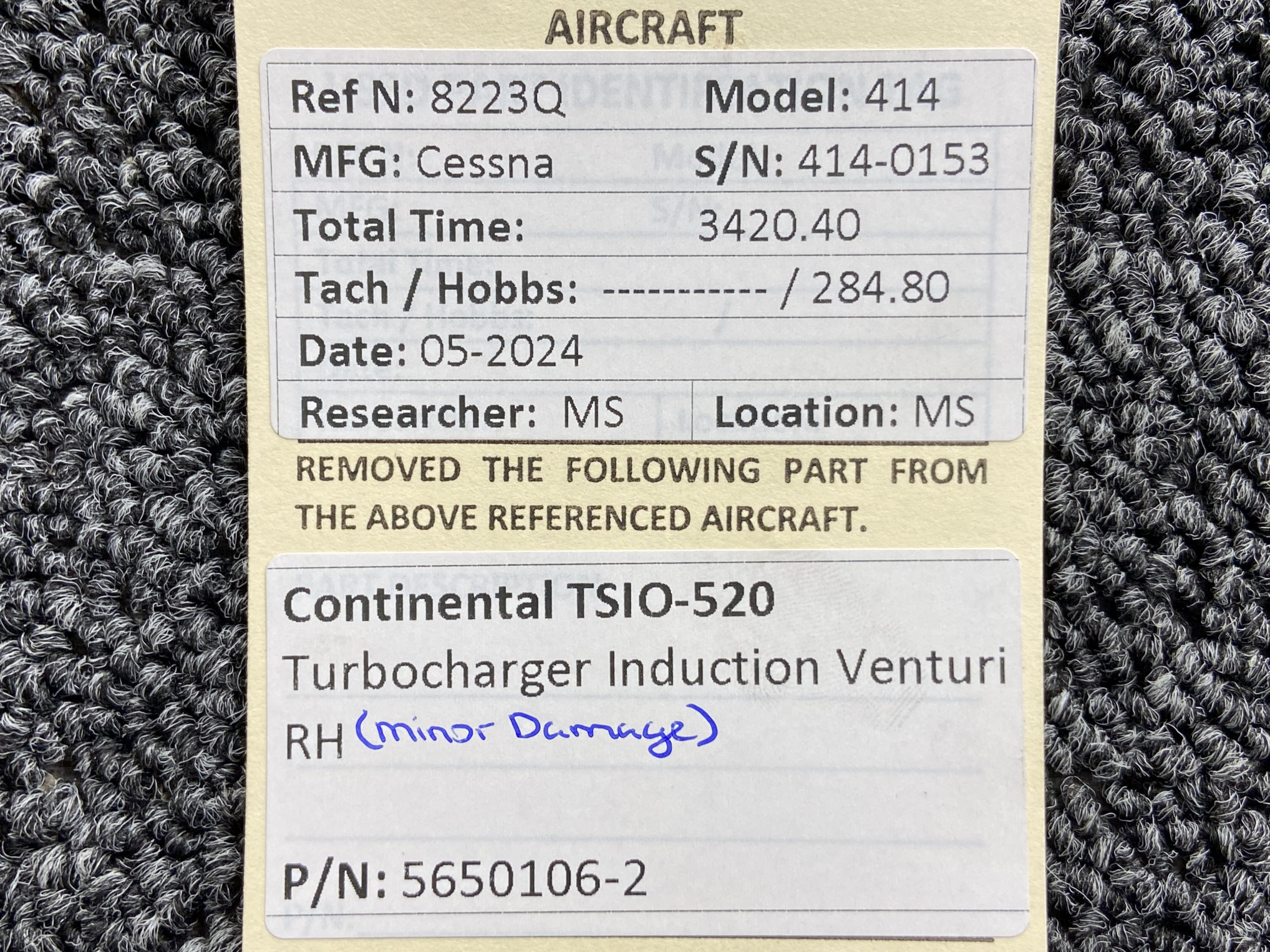 - Removed from Continental TSIO-520
