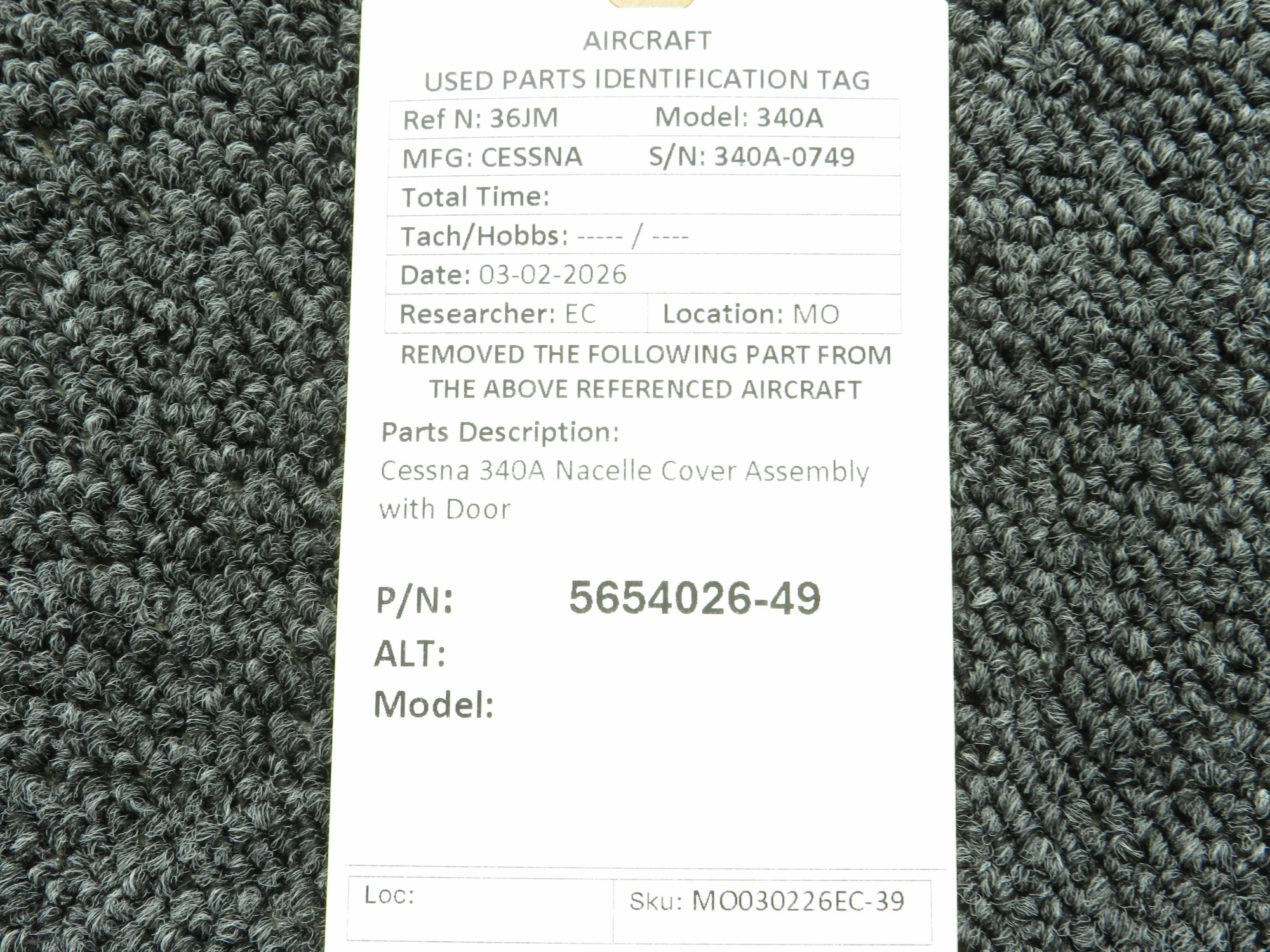 Every part is carefully inspected throughout our process and several times before it goes online. Most items are sold as-removed, just as they came off the aircraft. These parts are not functionally tested. What we do provide is clear photos, full traceability when available, pricing that reflects the as-removed condition, and a no-nonsense 90-day return window.