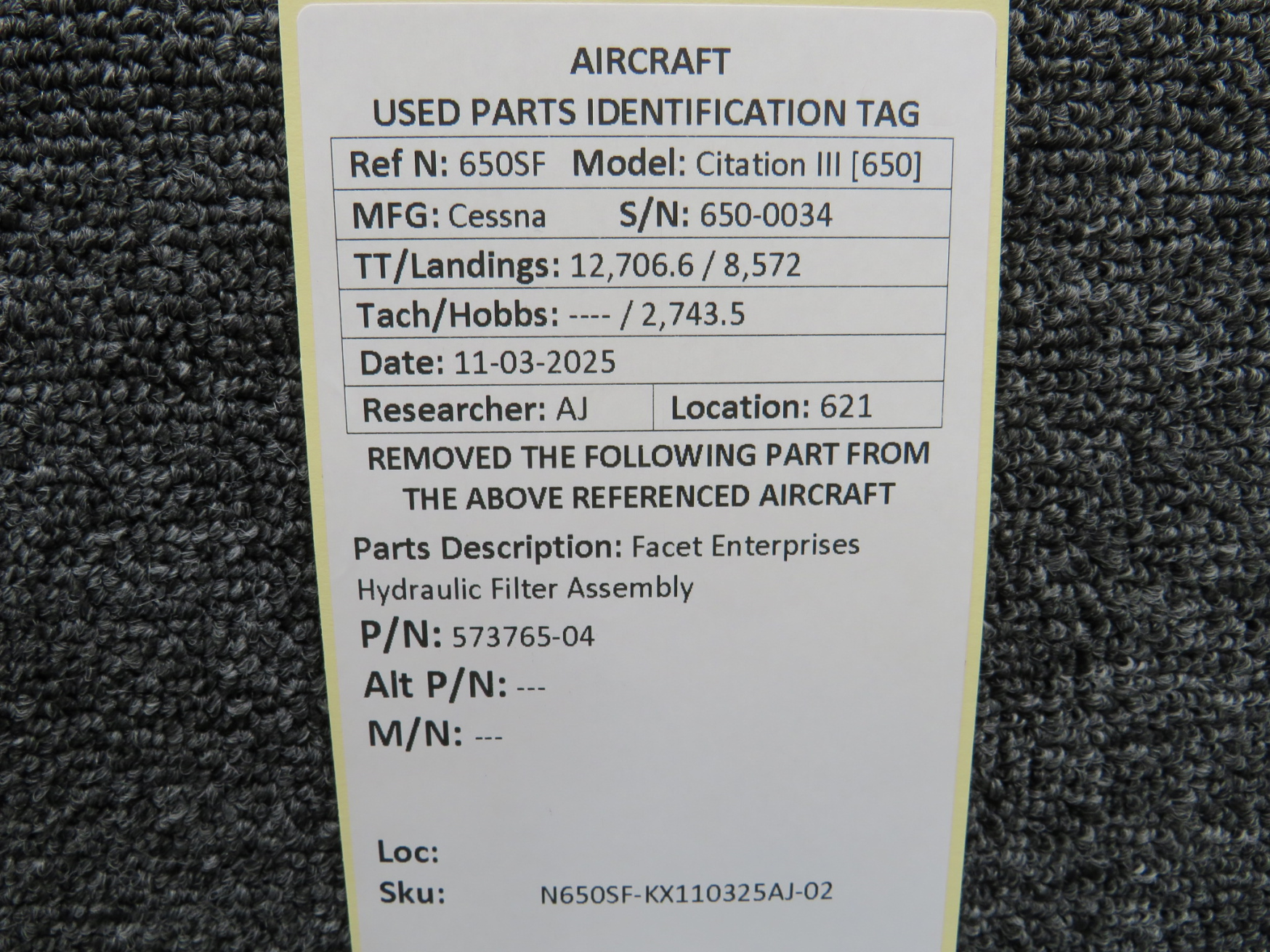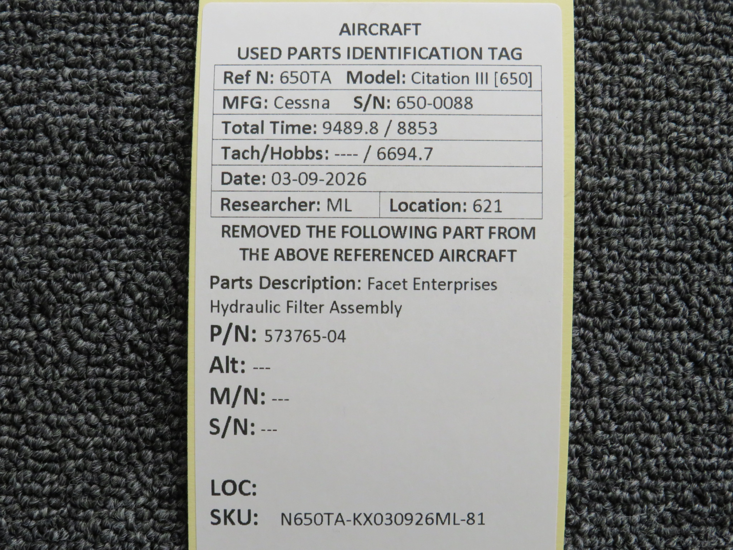Every part is carefully inspected throughout our process and several times before it goes online. Most items are sold as-removed, just as they came off the aircraft. These parts are not functionally tested. What we do provide is clear photos, full traceability when available, pricing that reflects the as-removed condition, and a no-nonsense 90-day return window.