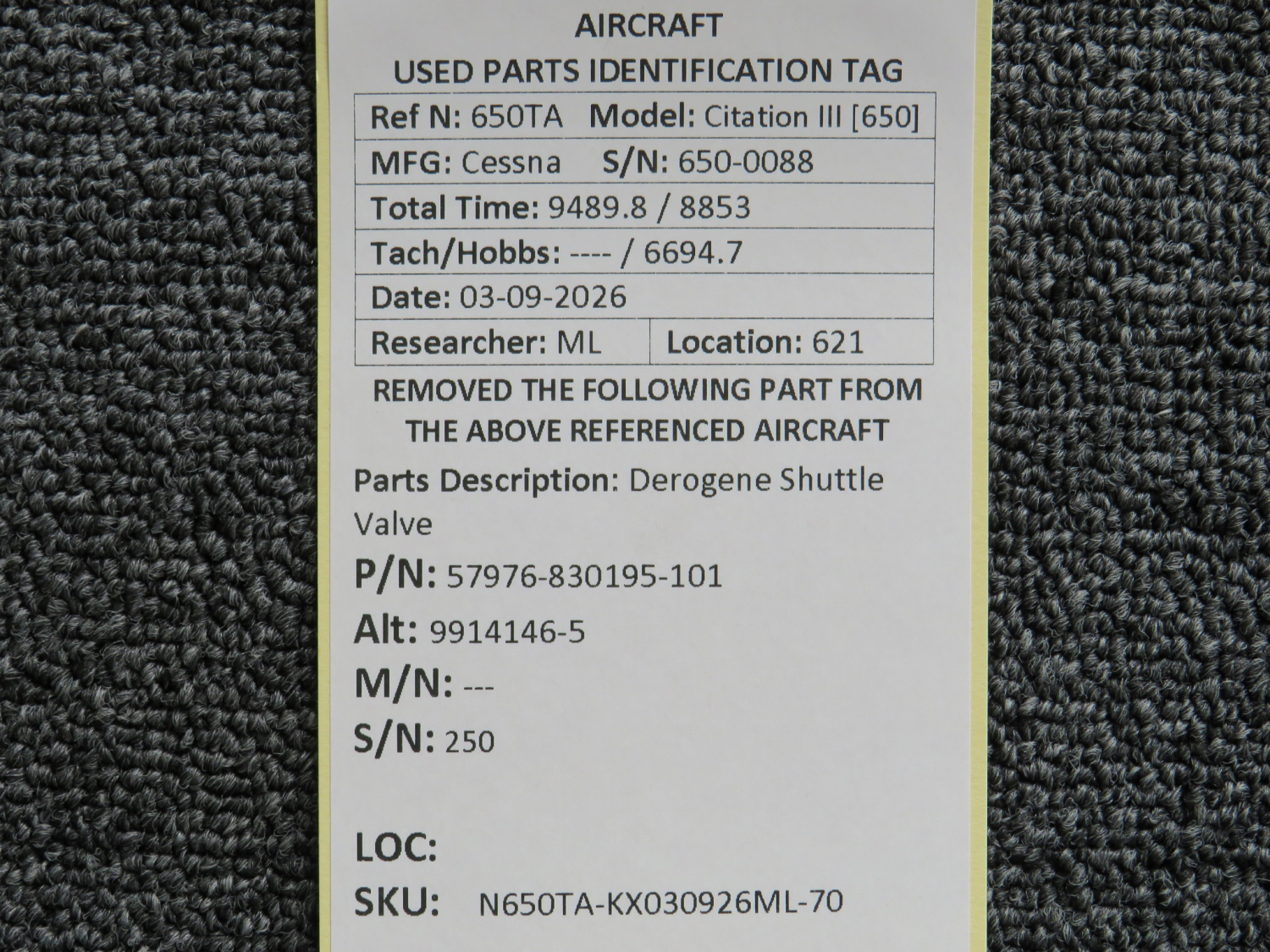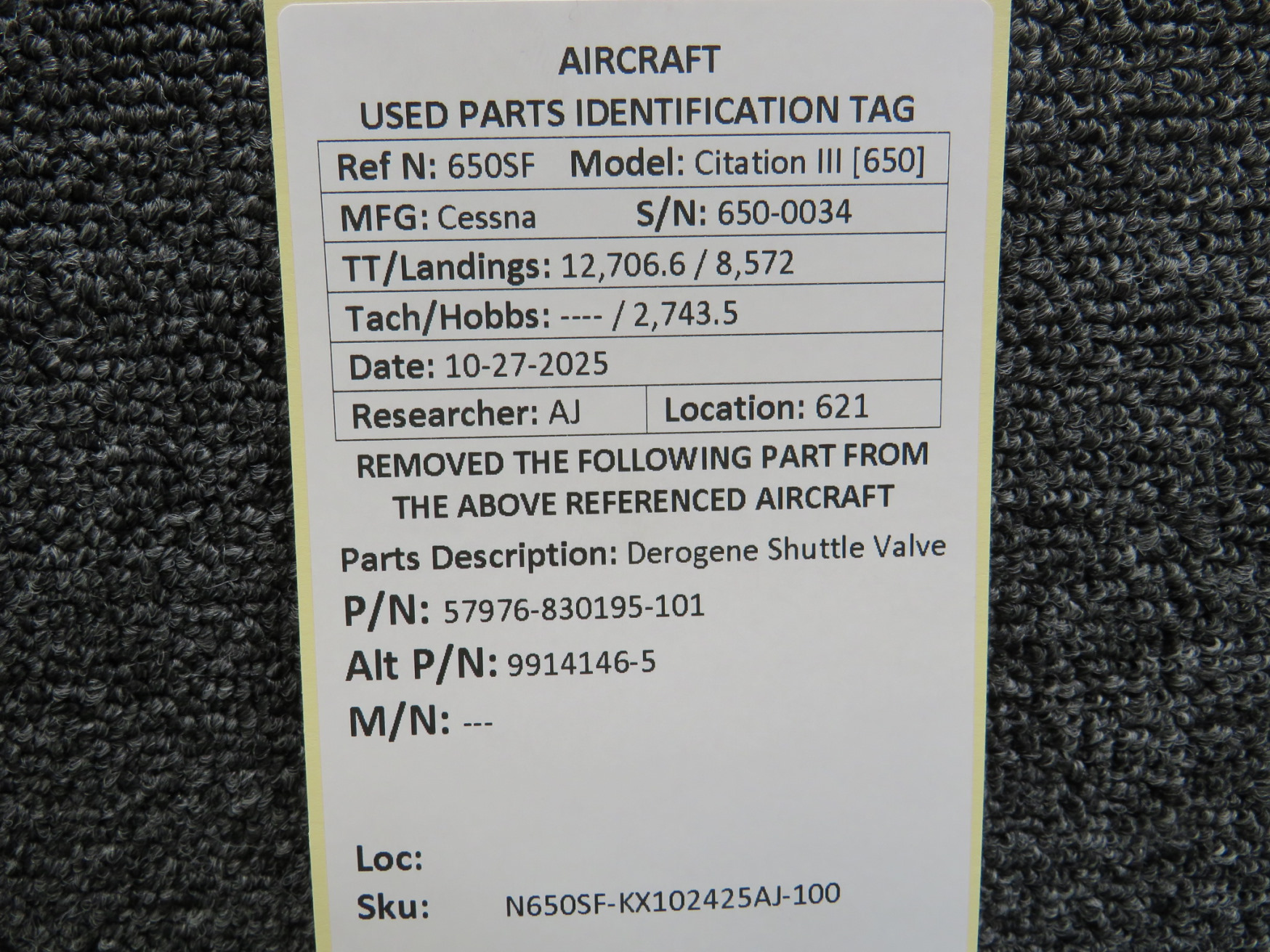Every part is carefully inspected throughout our process and several times before it goes online. Most items are sold as-removed, just as they came off the aircraft. These parts are not functionally tested. What we do provide is clear photos, full traceability when available, pricing that reflects the as-removed condition, and a no-nonsense 90-day return window.