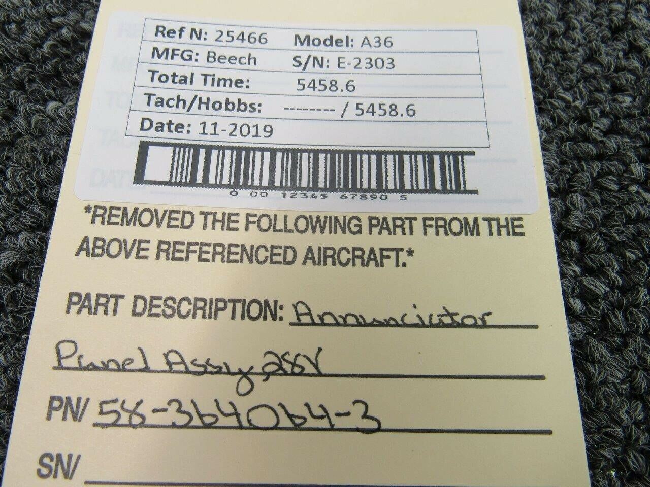 58-364064-3 Beech A36 Annunciator Panel Assy (Volts: 28)