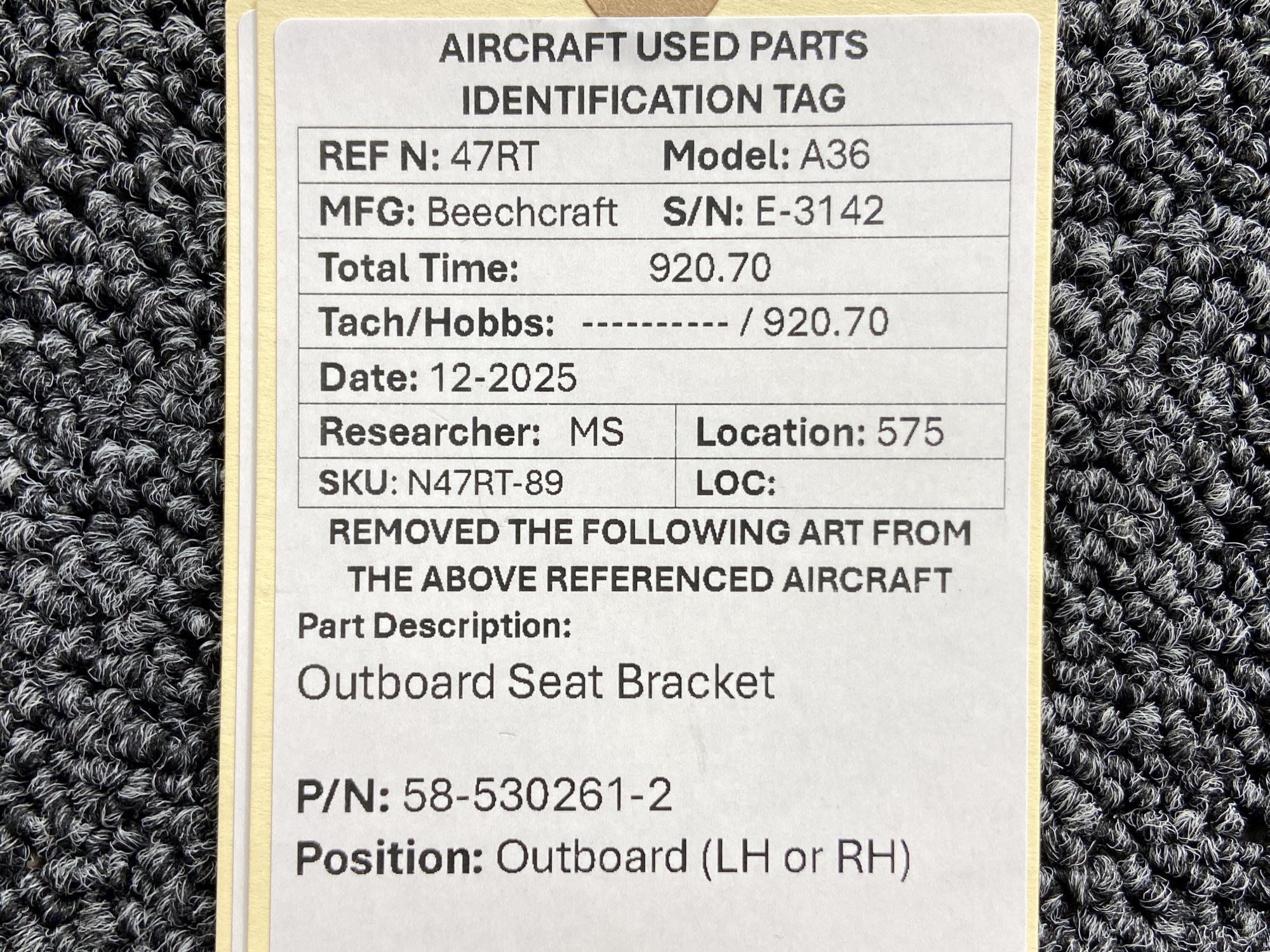 Unless specifically noted, most of our used airplane parts are sold in the condition they were removed, which means you should expect the usual signs of wear and tear.