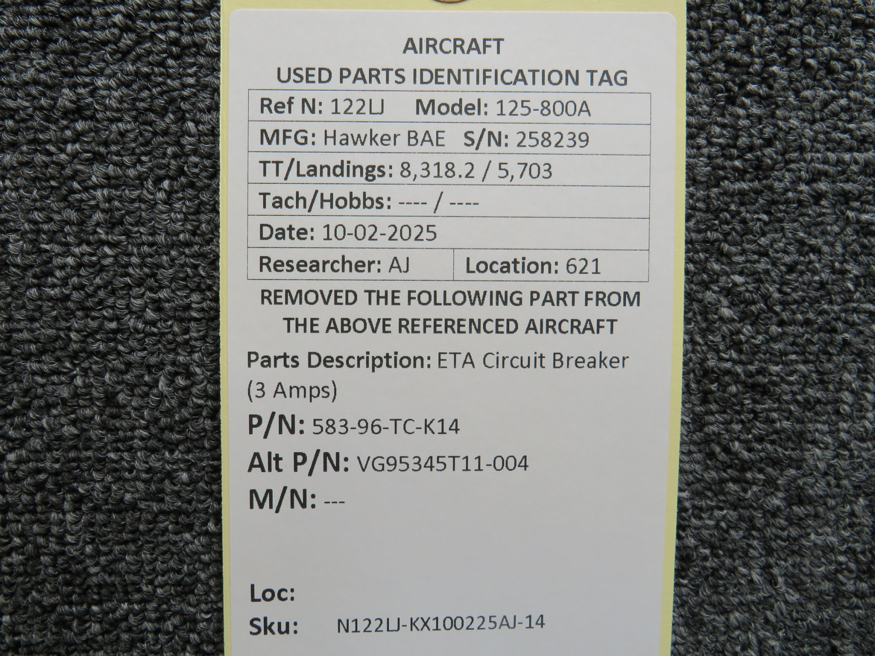 Unless specifically noted, most of our used airplane parts are sold in the condition they were removed, which means you should expect the usual signs of wear and tear.