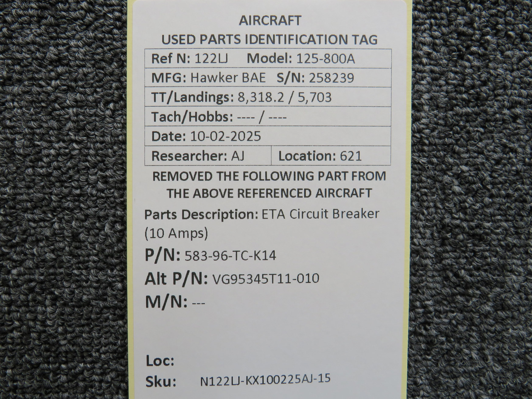 Unless specifically noted, most of our used airplane parts are sold in the condition they were removed, which means you should expect the usual signs of wear and tear.