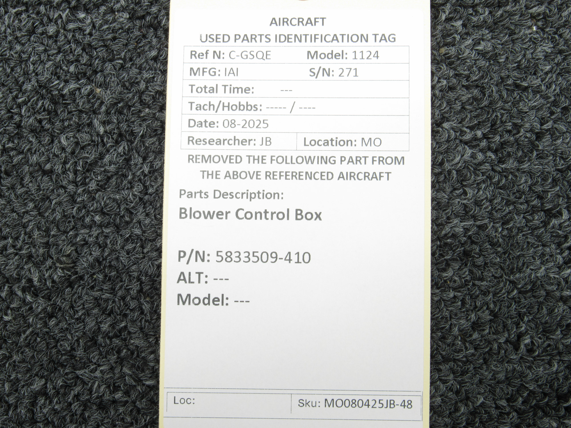 Unless specifically noted, most of our used airplane parts are sold in the condition they were removed, which means you should expect the usual signs of wear and tear.