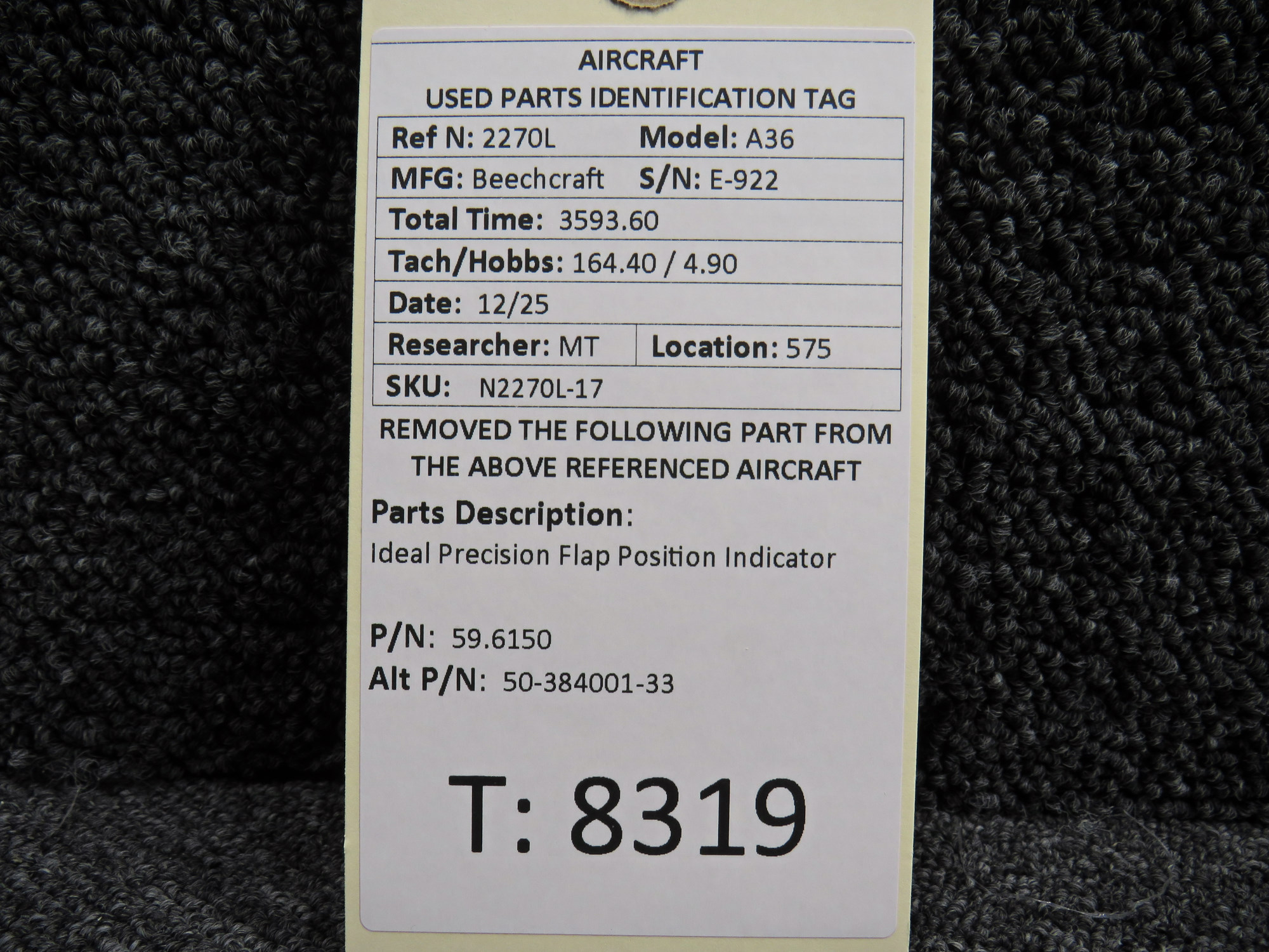 Unless specifically noted, most of our used airplane parts are sold in the condition they were removed, which means you should expect the usual signs of wear and tear.