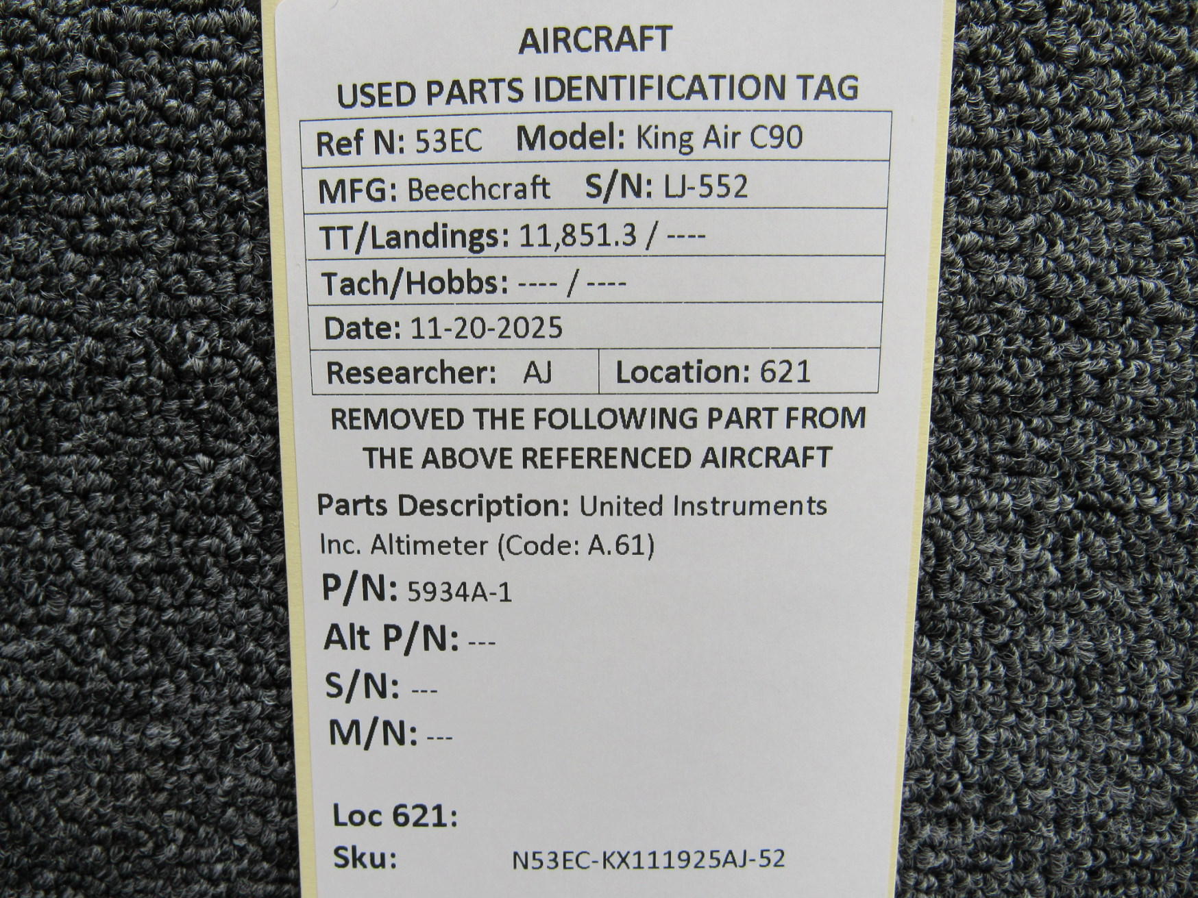 Unless specifically noted, most of our used airplane parts are sold in the condition they were removed, which means you should expect the usual signs of wear and tear.