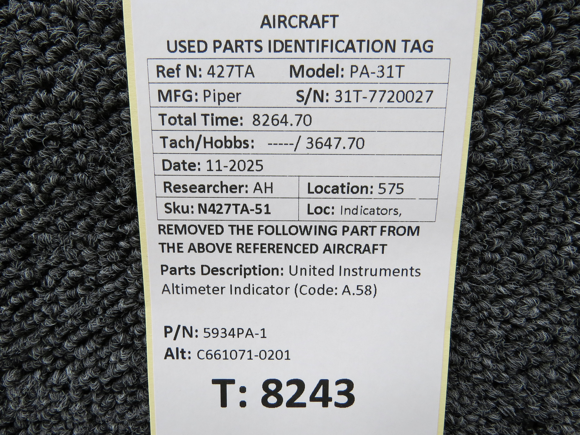 Unless specifically noted, most of our used airplane parts are sold in the condition they were removed, which means you should expect the usual signs of wear and tear.