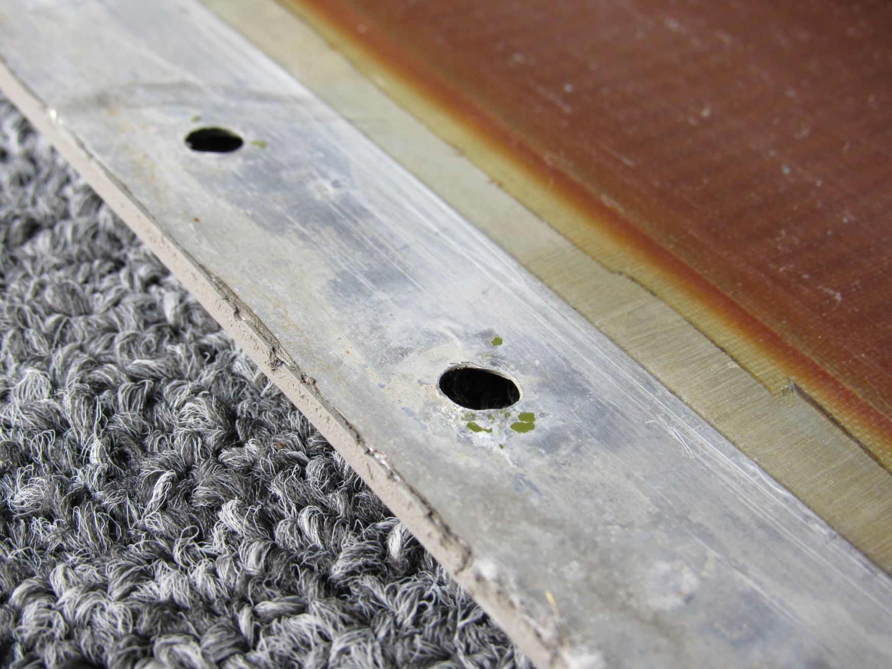 - Random hole drilled on skinny end leading edge.