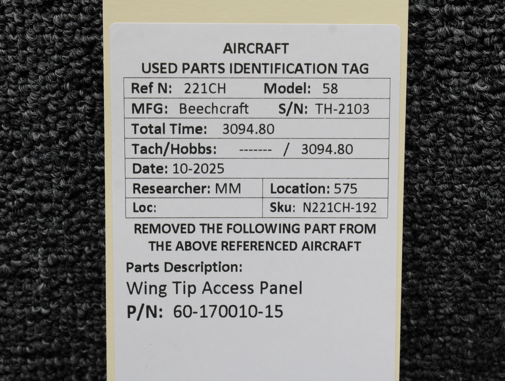 Unless specifically noted, most of our used airplane parts are sold in the condition they were removed, which means you should expect the usual signs of wear and tear.