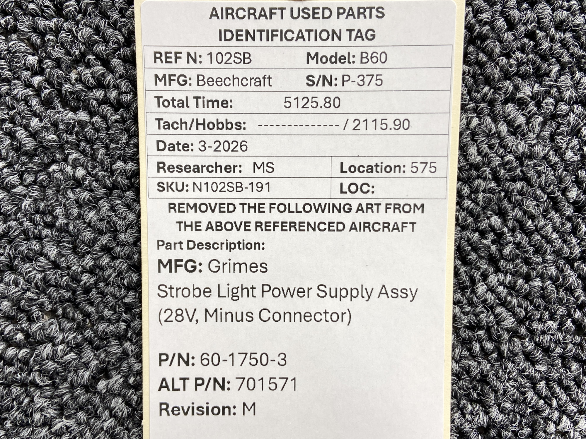 Every part is carefully inspected throughout our process and several times before it goes online. Most items are sold as-removed, just as they came off the aircraft. These parts are not functionally tested. What we do provide is clear photos, full traceability when available, pricing that reflects the as-removed condition, and a no-nonsense 90-day return window.