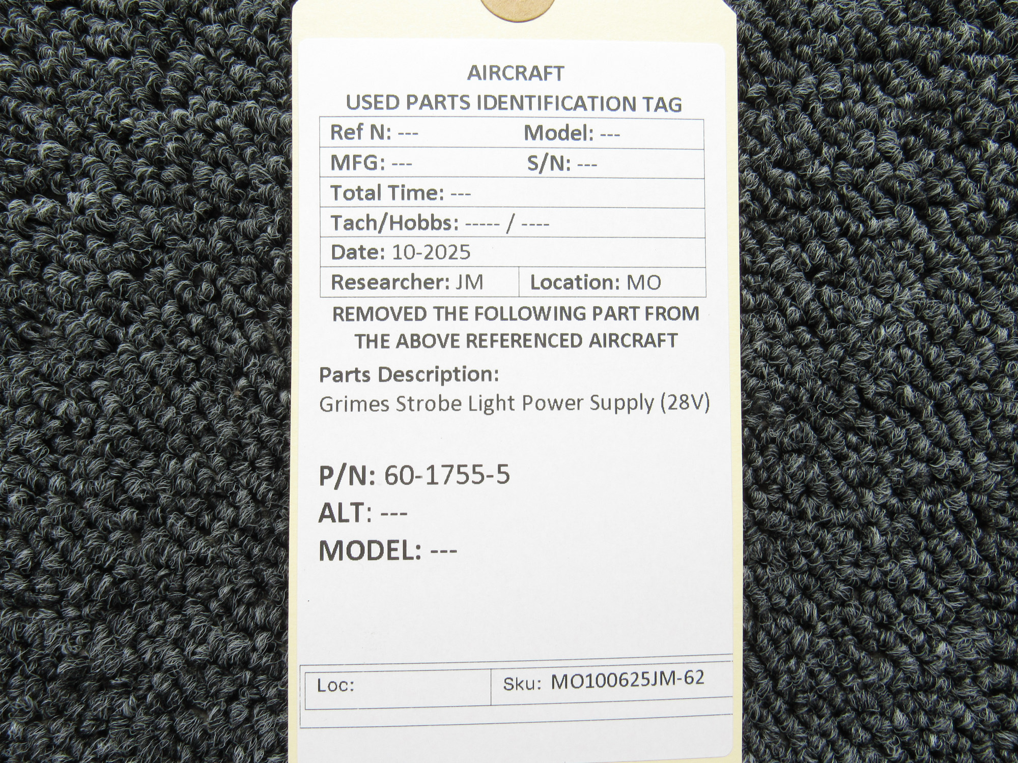 Unless specifically noted, most of our used airplane parts are sold in the condition they were removed, which means you should expect the usual signs of wear and tear.