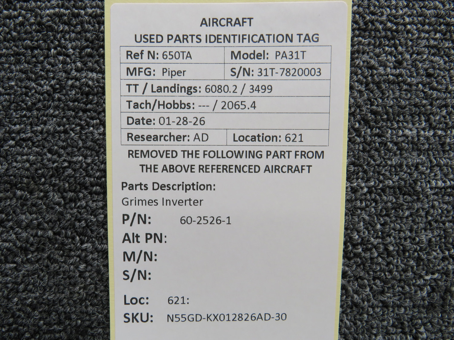 Unless specifically noted, most of our used airplane parts are sold in the condition they were removed, which means you should expect the usual signs of wear and tear.