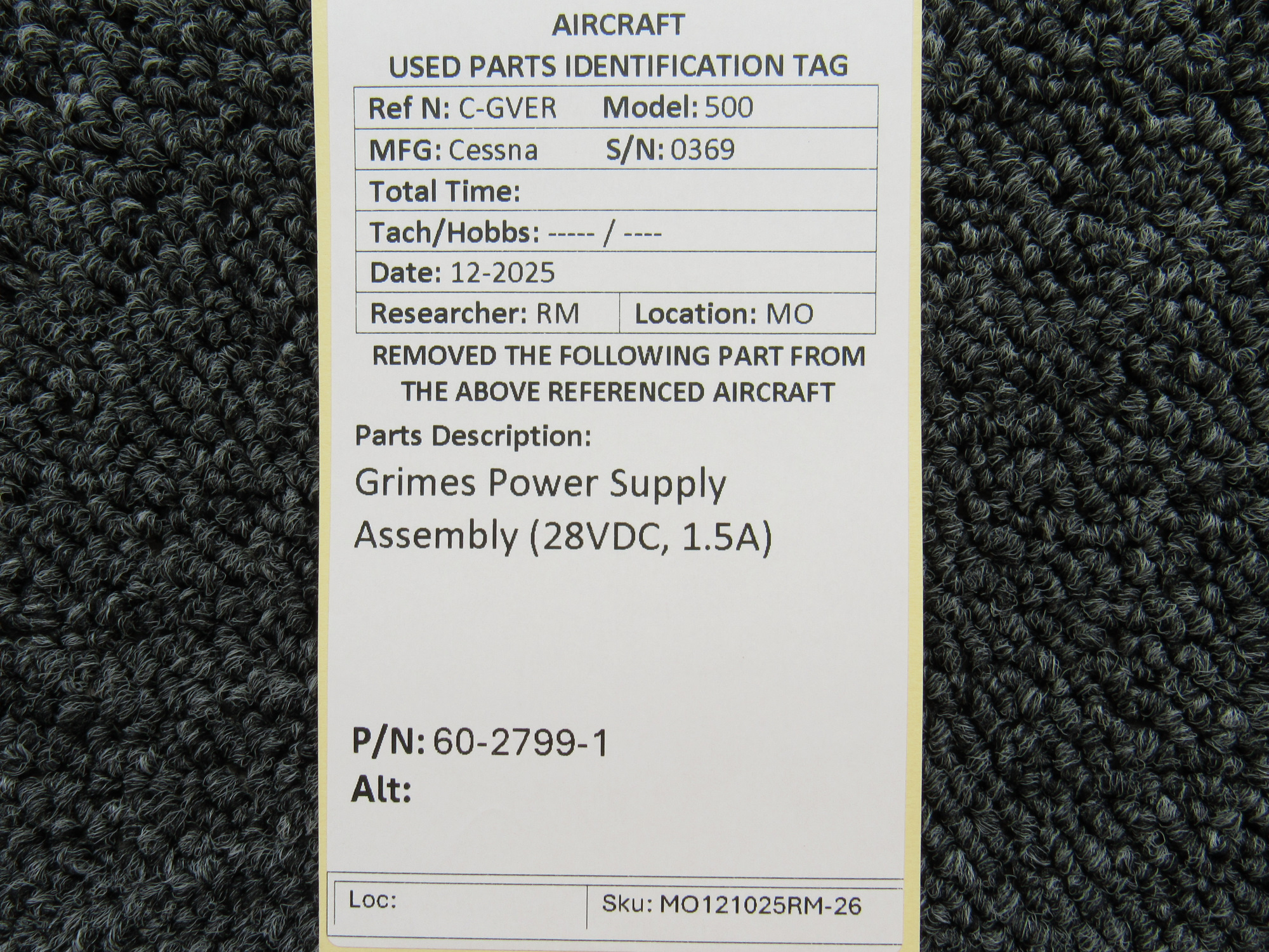 Unless specifically noted, most of our used airplane parts are sold in the condition they were removed, which means you should expect the usual signs of wear and tear.