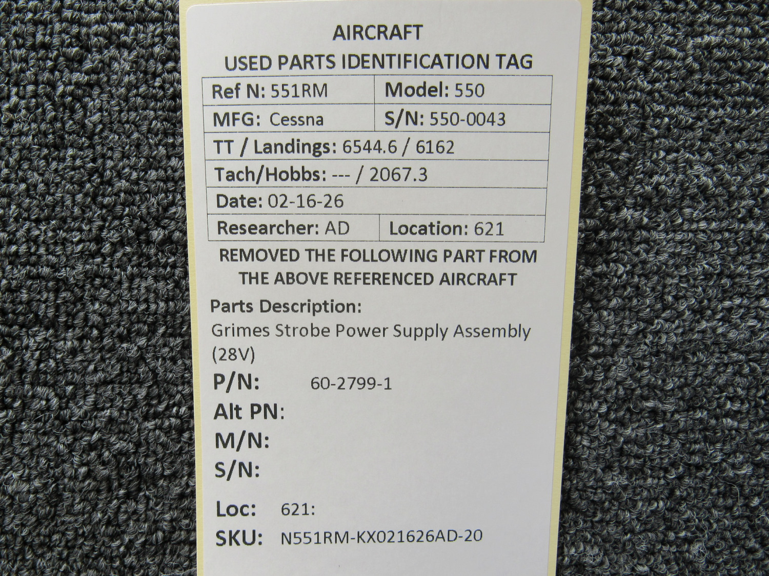 Unless specifically noted, most of our used airplane parts are sold in the condition they were removed, which means you should expect the usual signs of wear and tear.