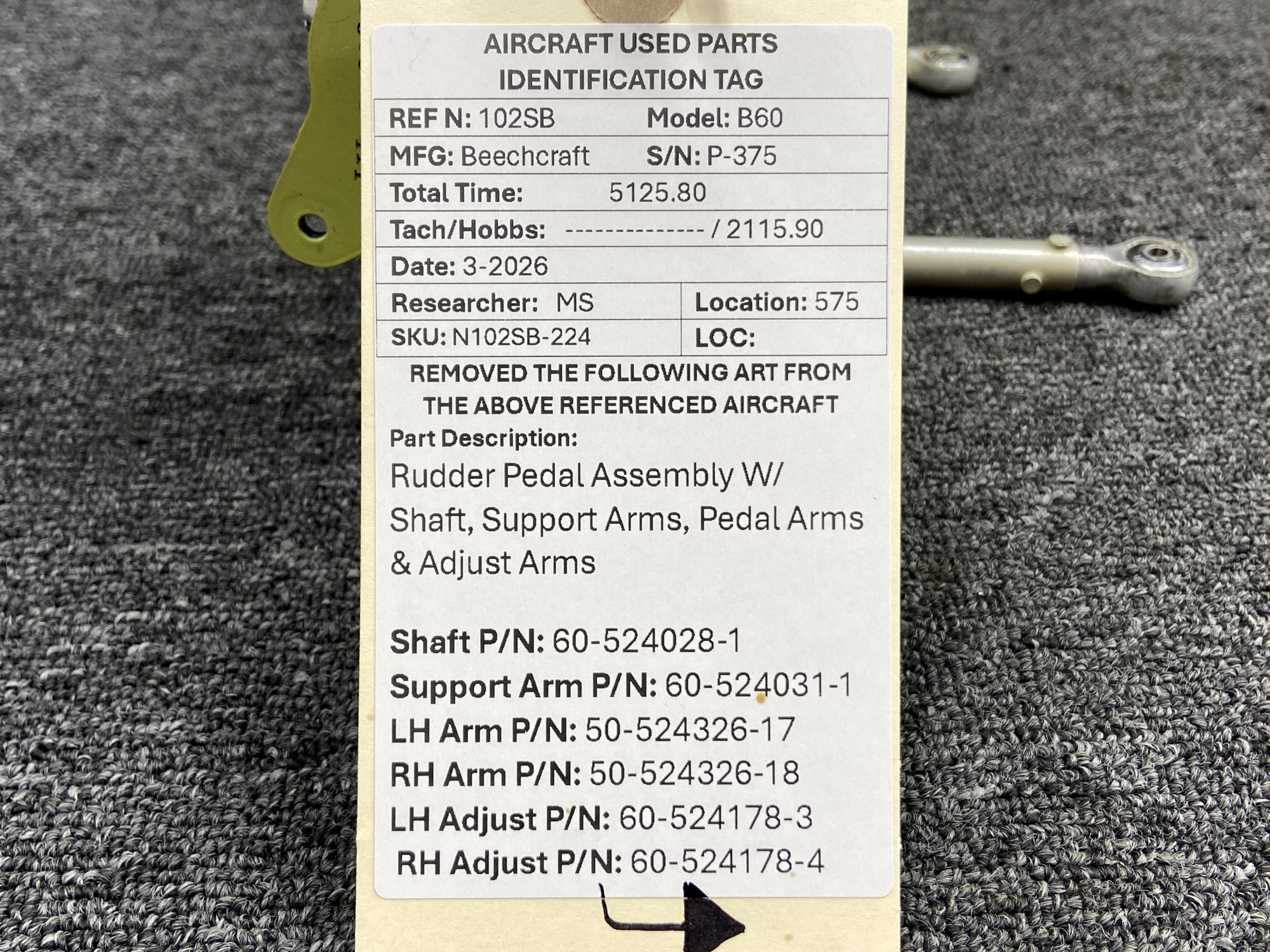 - Support Arm Part Number: 60-524031-1