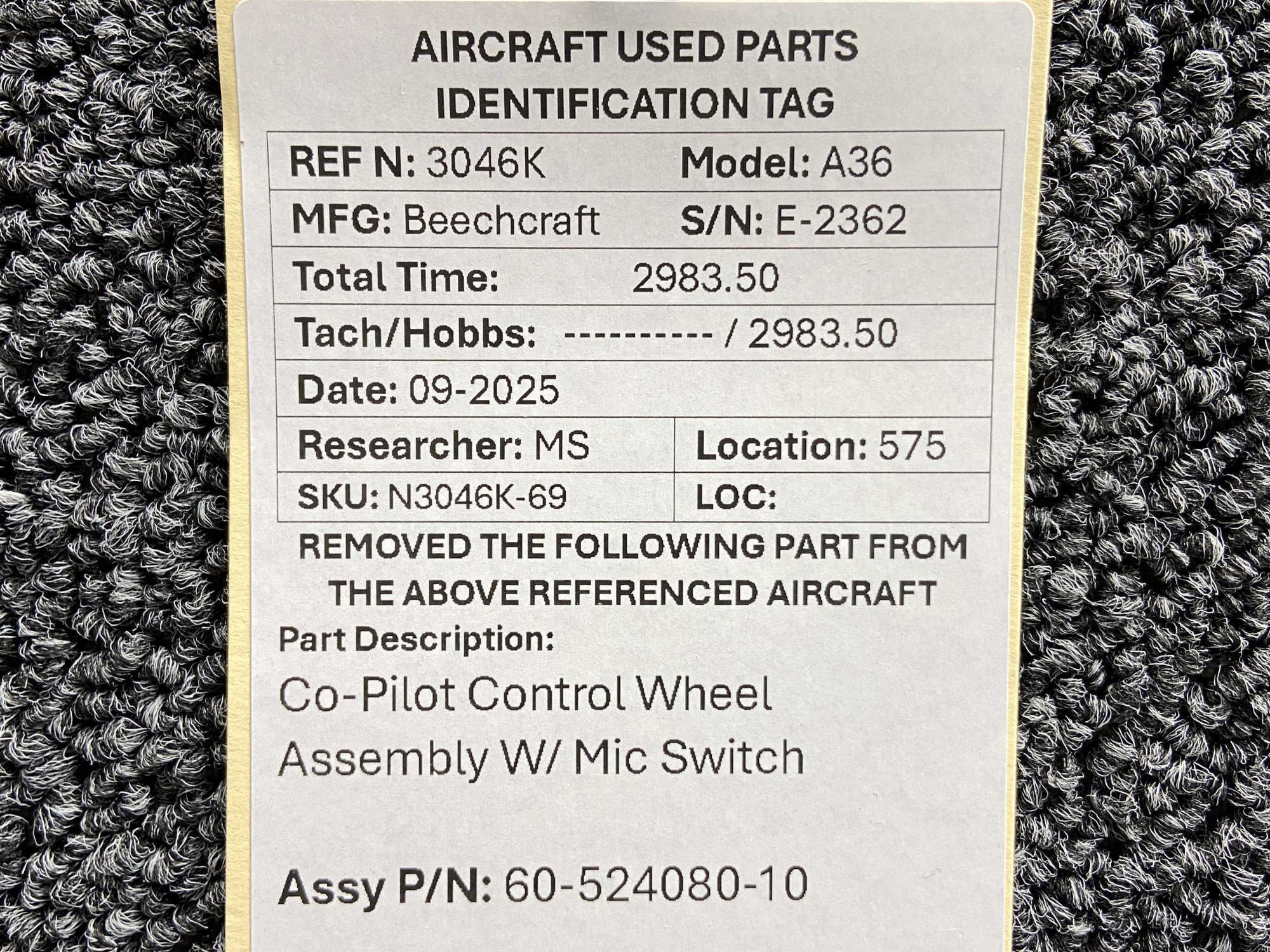 Unless specifically noted, most of our used airplane parts are sold in the condition they were removed, which means you should expect the usual signs of wear and tear.