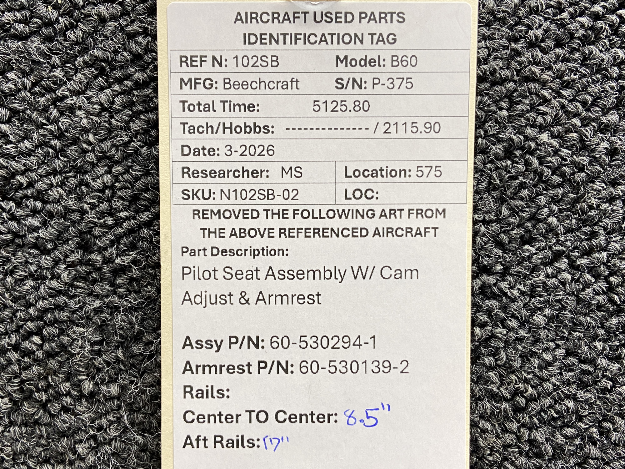 - Armrest Part Number: 60-530139-2