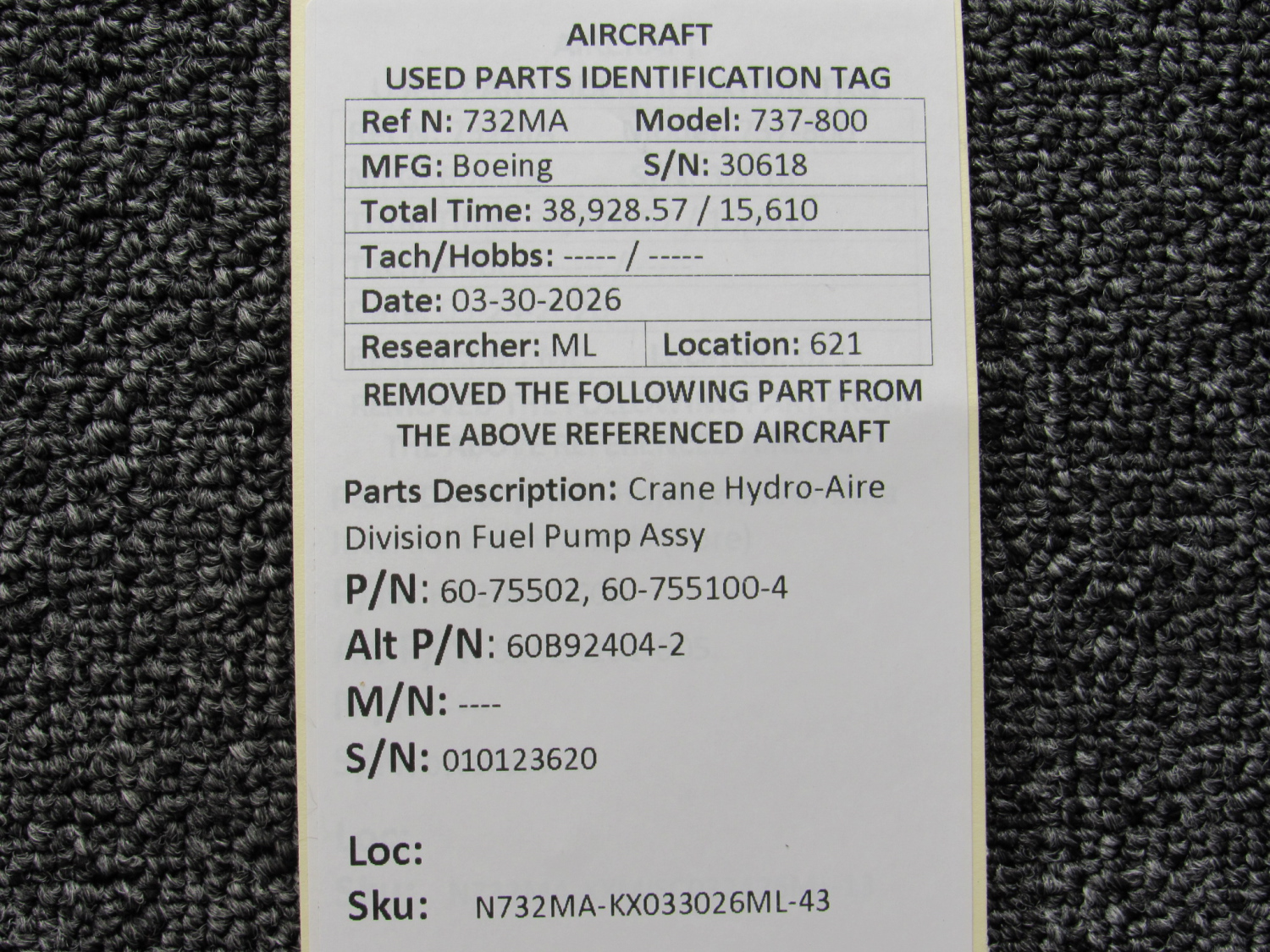 Every part is carefully inspected throughout our process and several times before it goes online. Most items are sold as-removed, just as they came off the aircraft. These parts are not functionally tested. What we do provide is clear photos, full traceability when available, pricing that reflects the as-removed condition, and a no-nonsense 90-day return window.