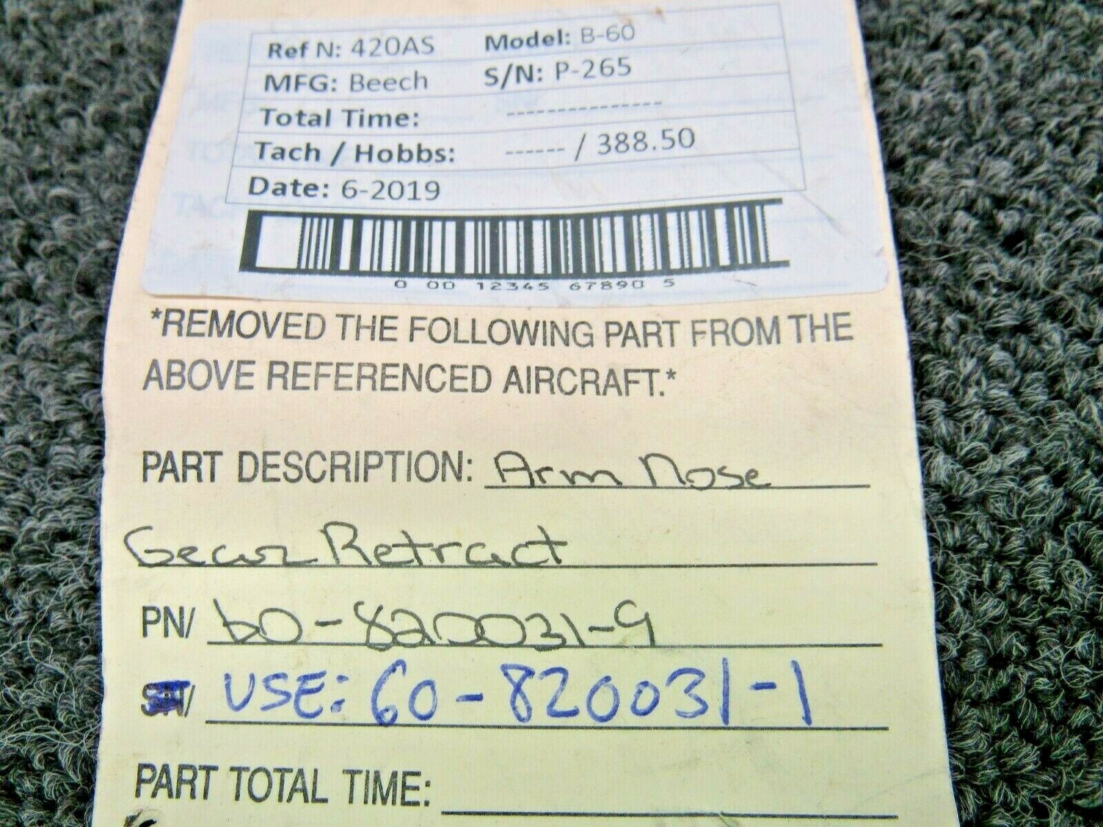 60-820031-9 (Alt: 60-820031-1) Beech B60 Nose Gear Retract Arm