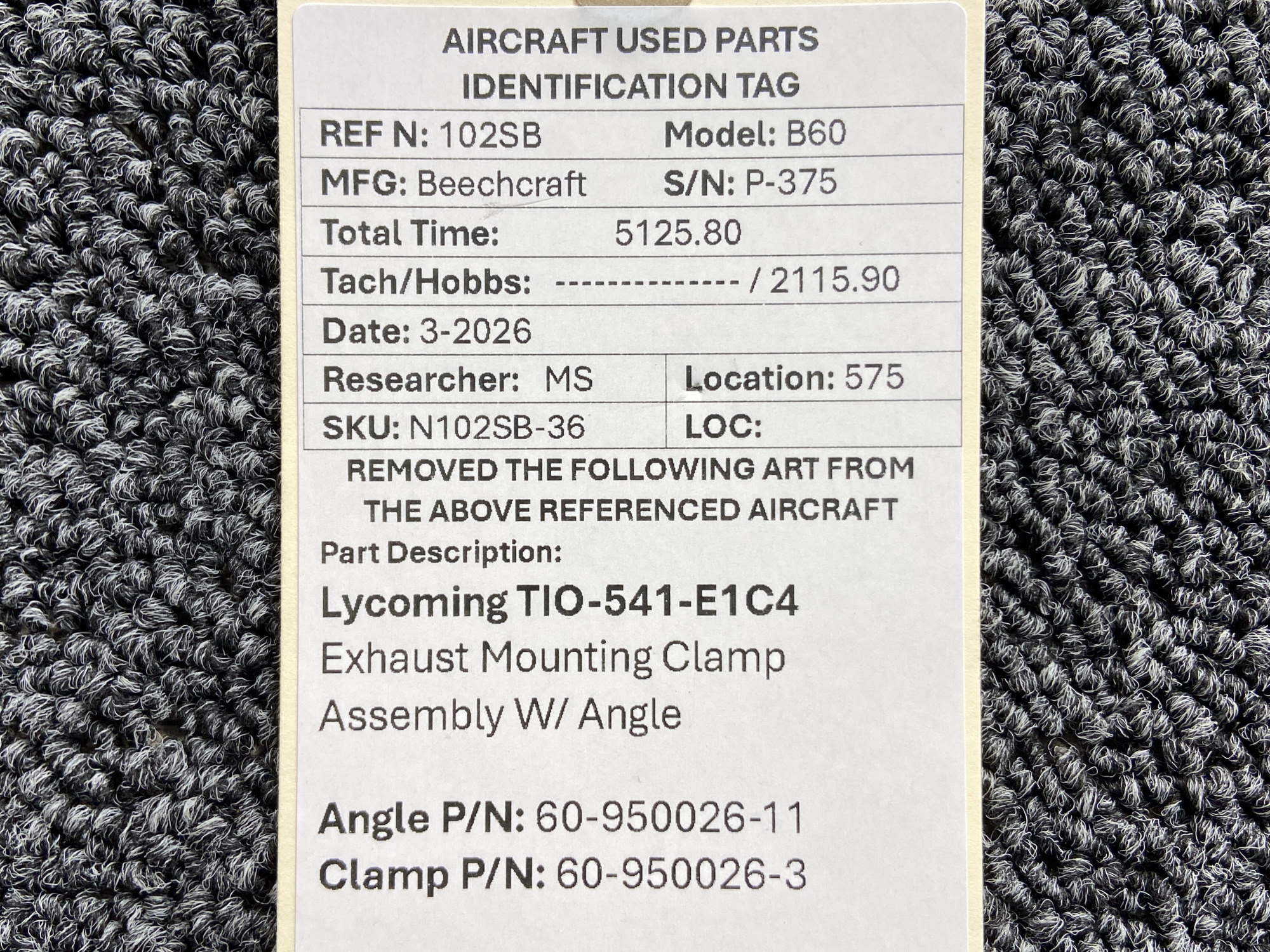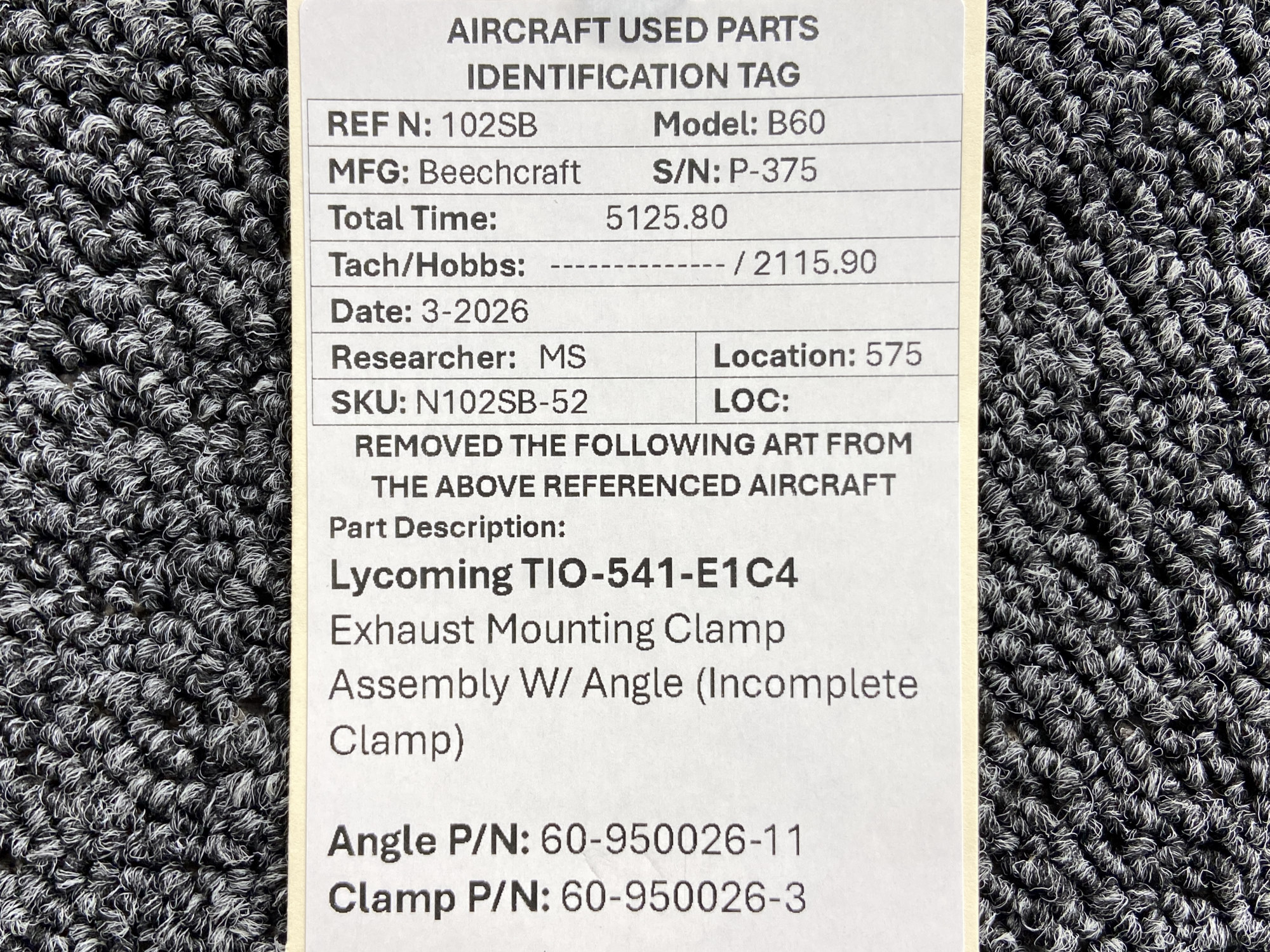 - Clamp Part Number: 60-950026-3