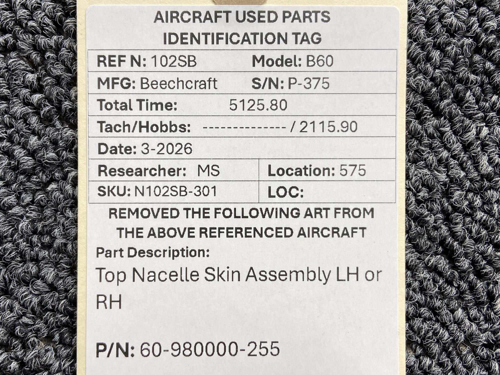 Every part is carefully inspected throughout our process and several times before it goes online. Most items are sold as-removed, just as they came off the aircraft. These parts are not functionally tested. What we do provide is clear photos, full traceability when available, pricing that reflects the as-removed condition, and a no-nonsense 90-day return window.