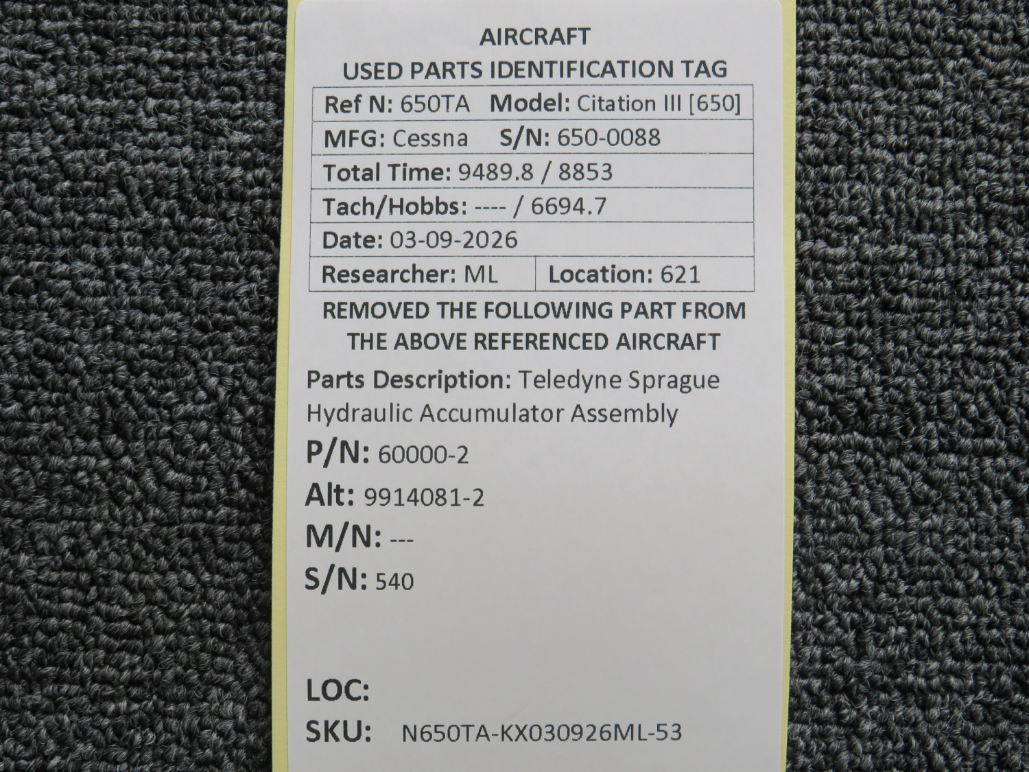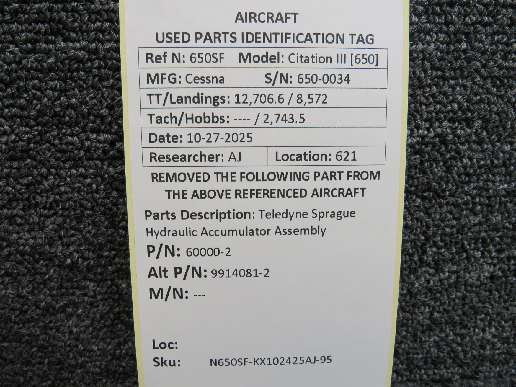 Every part is carefully inspected throughout our process and several times before it goes online. Most items are sold as-removed, just as they came off the aircraft. These parts are not functionally tested. What we do provide is clear photos, full traceability when available, pricing that reflects the as-removed condition, and a no-nonsense 90-day return window.