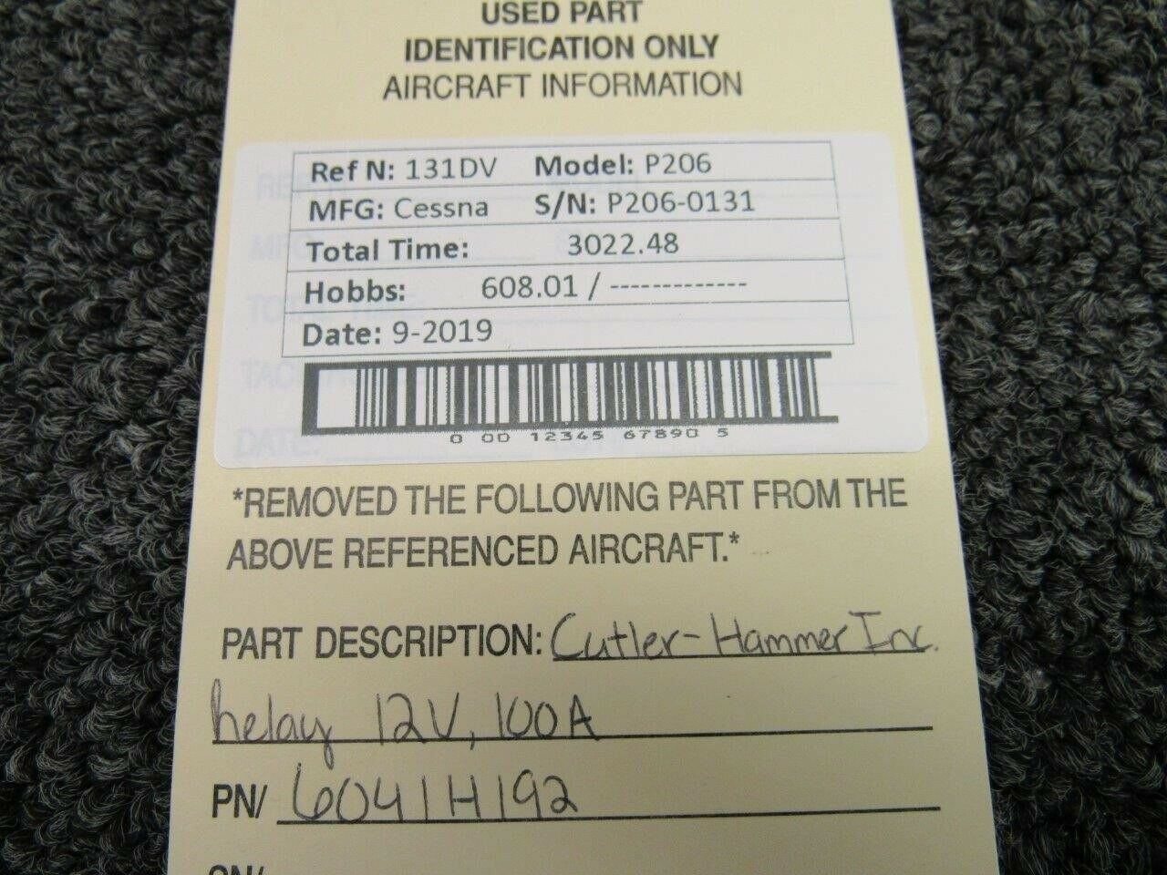 6041H192 Cessna P206 Cutler-Hammer Inc Relay (Volts: 12) (Amps: 100)