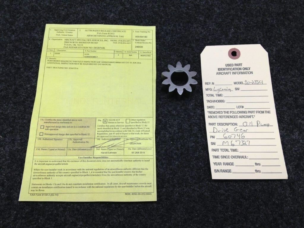 60746 IO-235-C1 Oil Pump Drive Gear M67327 w/ 8130 Paperwork