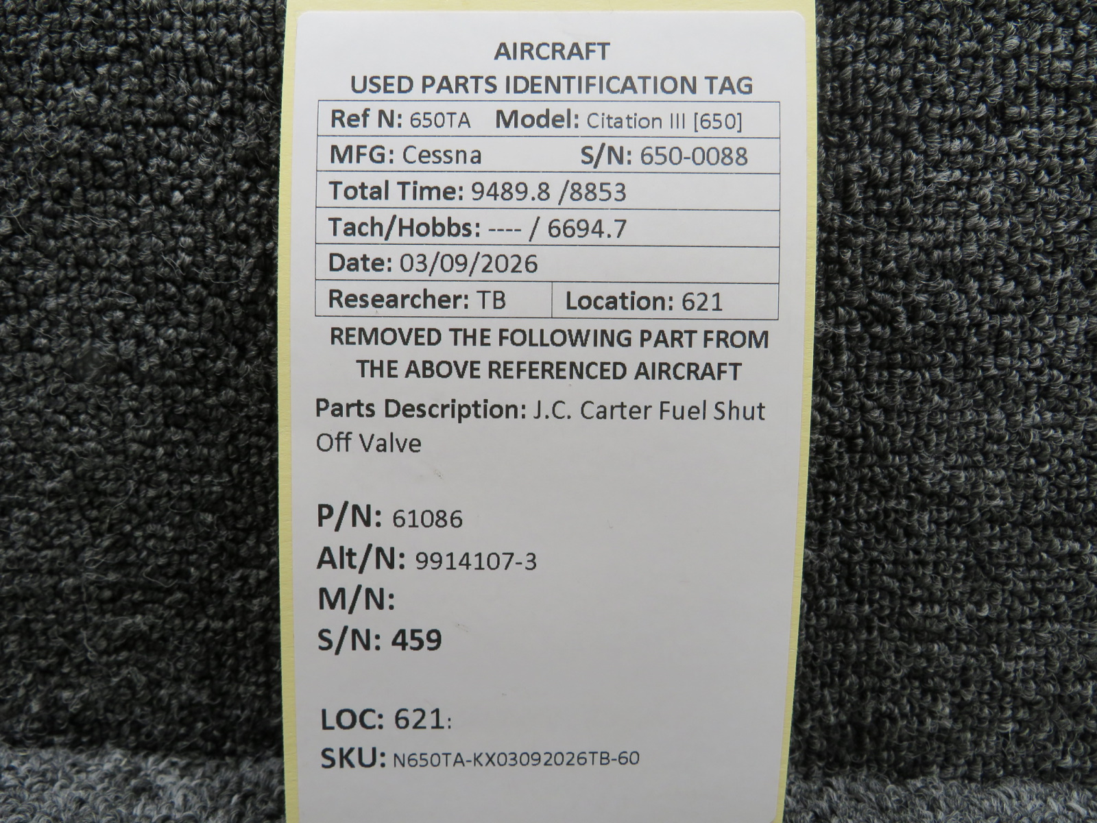 Every part is carefully inspected throughout our process and several times before it goes online. Most items are sold as-removed, just as they came off the aircraft. These parts are not functionally tested. What we do provide is clear photos, full traceability when available, pricing that reflects the as-removed condition, and a no-nonsense 90-day return window.