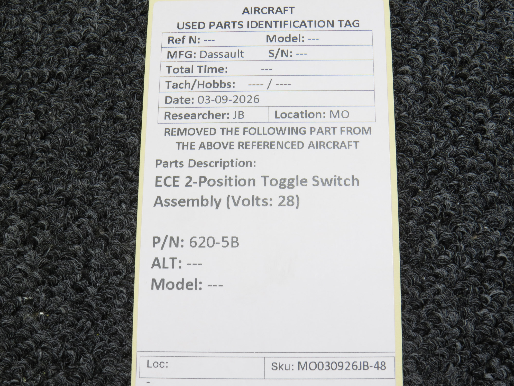 Every part is carefully inspected throughout our process and several times before it goes online. Most items are sold as-removed, just as they came off the aircraft. These parts are not functionally tested. What we do provide is clear photos, full traceability when available, pricing that reflects the as-removed condition, and a no-nonsense 90-day return window.