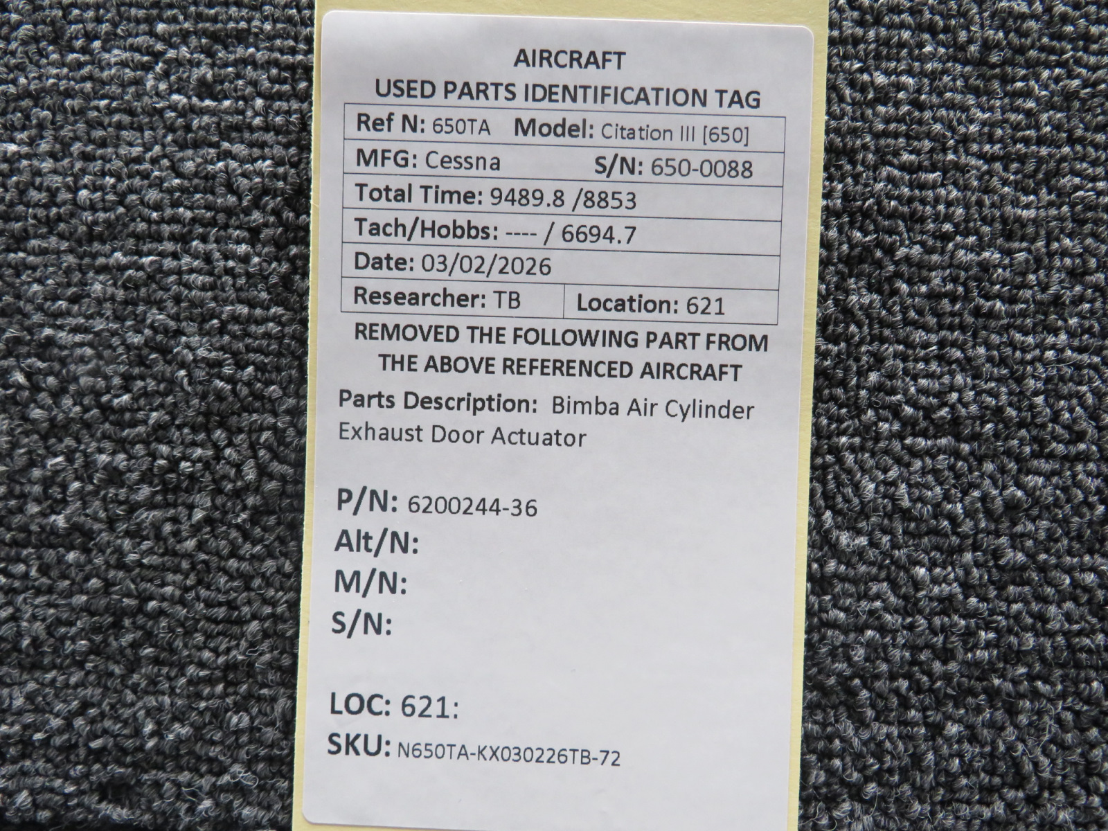 Every part is carefully inspected throughout our process and several times before it goes online. Most items are sold as-removed, just as they came off the aircraft. These parts are not functionally tested. What we do provide is clear photos, full traceability when available, pricing that reflects the as-removed condition, and a no-nonsense 90-day return window.