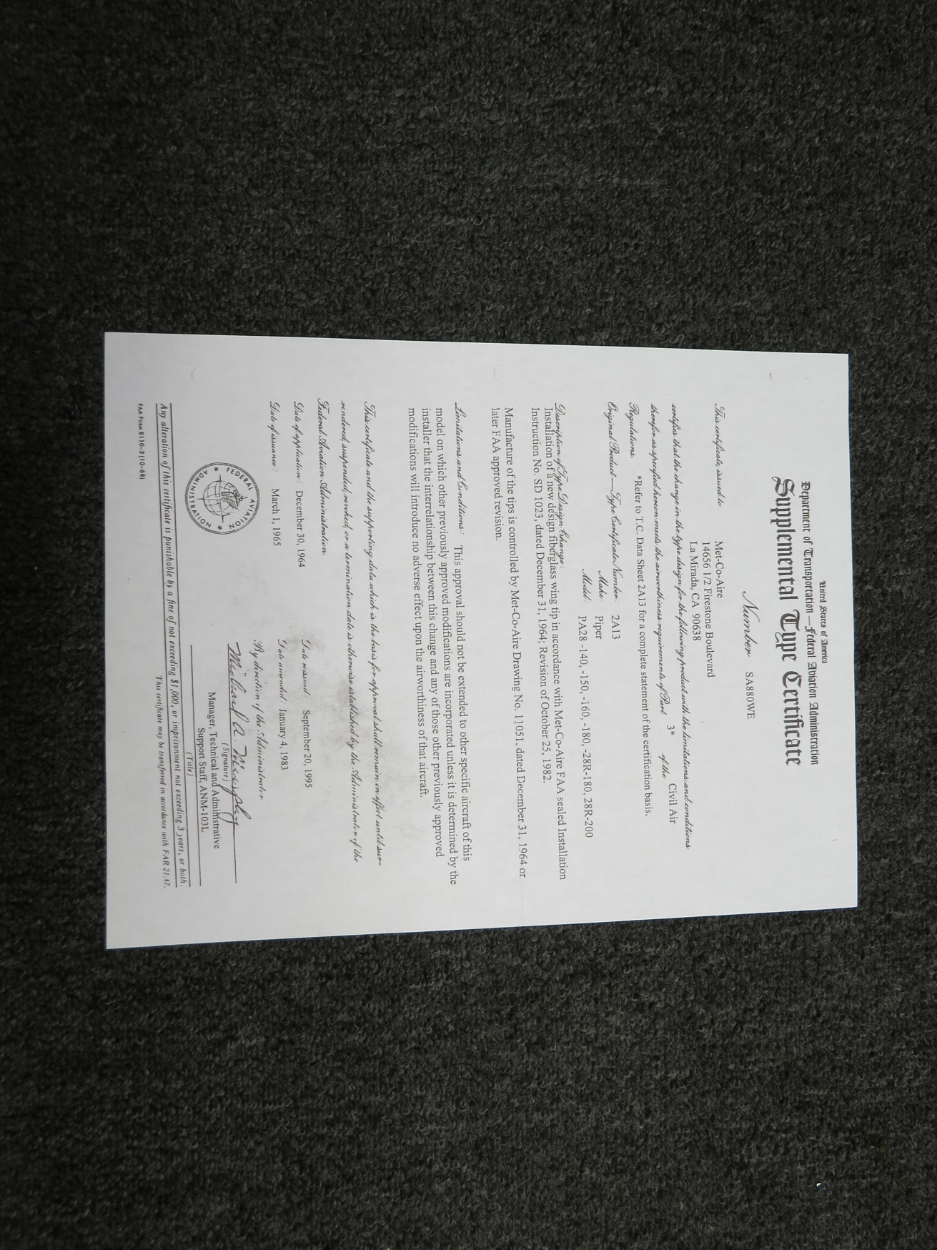 - STC Number: SA880WE