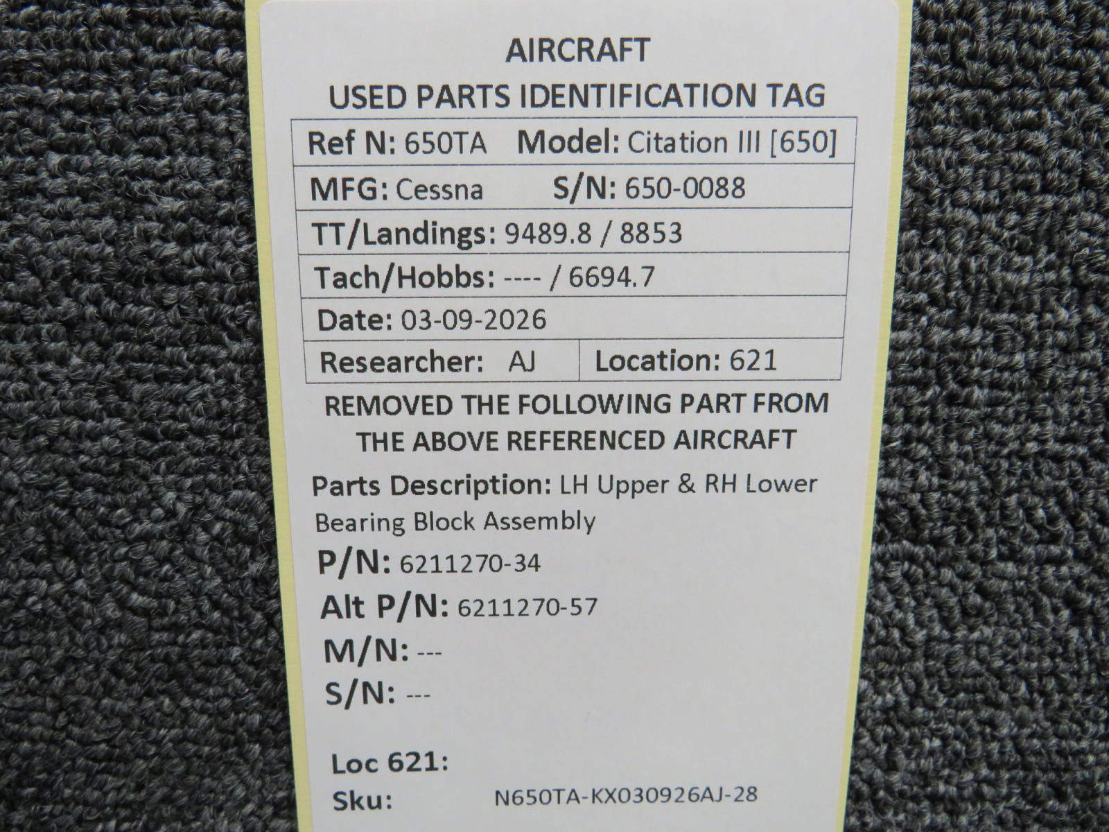 Every part is carefully inspected throughout our process and several times before it goes online. Most items are sold as-removed, just as they came off the aircraft. These parts are not functionally tested. What we do provide is clear photos, full traceability when available, pricing that reflects the as-removed condition, and a no-nonsense 90-day return window.