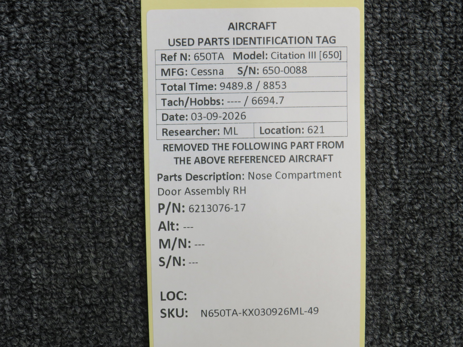 Every part is carefully inspected throughout our process and several times before it goes online. Most items are sold as-removed, just as they came off the aircraft. These parts are not functionally tested. What we do provide is clear photos, full traceability when available, pricing that reflects the as-removed condition, and a no-nonsense 90-day return window.