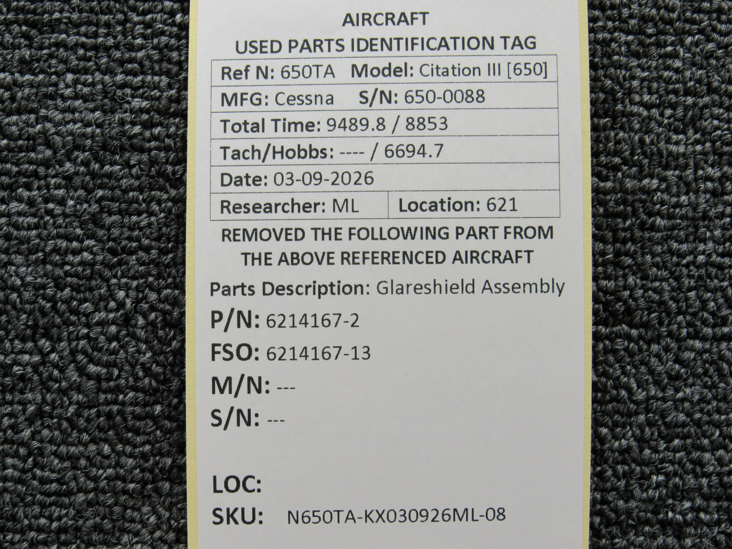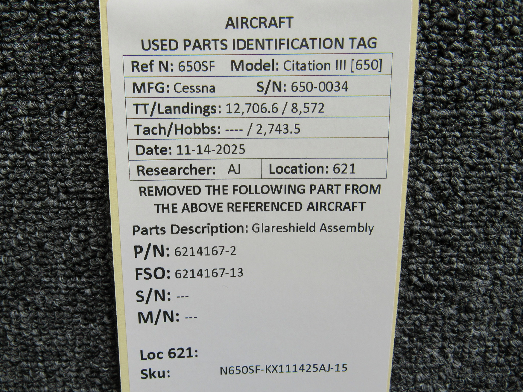 Every part is carefully inspected throughout our process and several times before it goes online. Most items are sold as-removed, just as they came off the aircraft. These parts are not functionally tested. What we do provide is clear photos, full traceability when available, pricing that reflects the as-removed condition, and a no-nonsense 90-day return window.