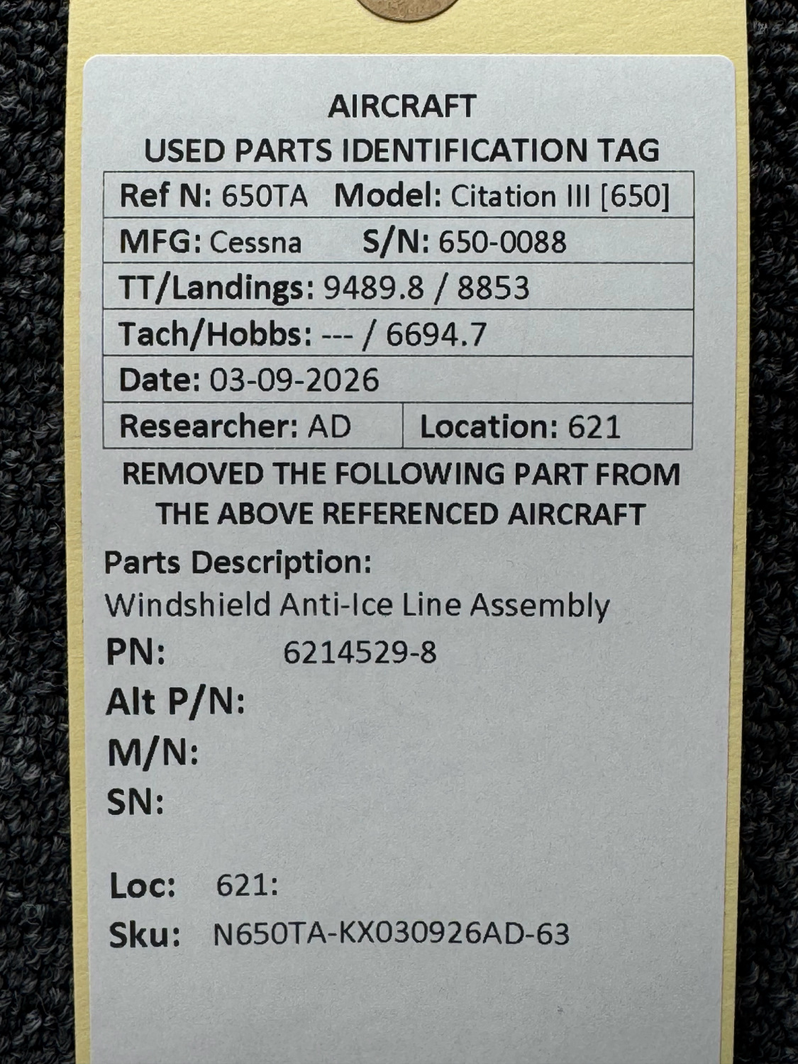 Every part is carefully inspected throughout our process and several times before it goes online. Most items are sold as-removed, just as they came off the aircraft. These parts are not functionally tested. What we do provide is clear photos, full traceability when available, pricing that reflects the as-removed condition, and a no-nonsense 90-day return window.