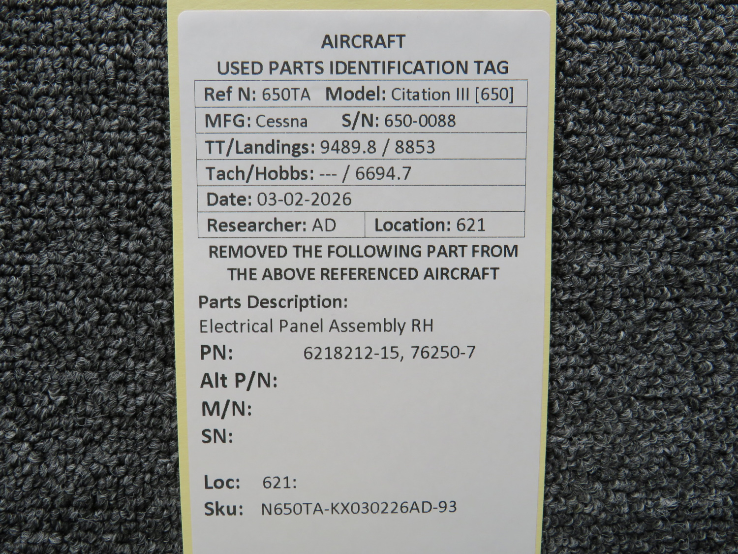 Every part is carefully inspected throughout our process and several times before it goes online. Most items are sold as-removed, just as they came off the aircraft. These parts are not functionally tested. What we do provide is clear photos, full traceability when available, pricing that reflects the as-removed condition, and a no-nonsense 90-day return window.