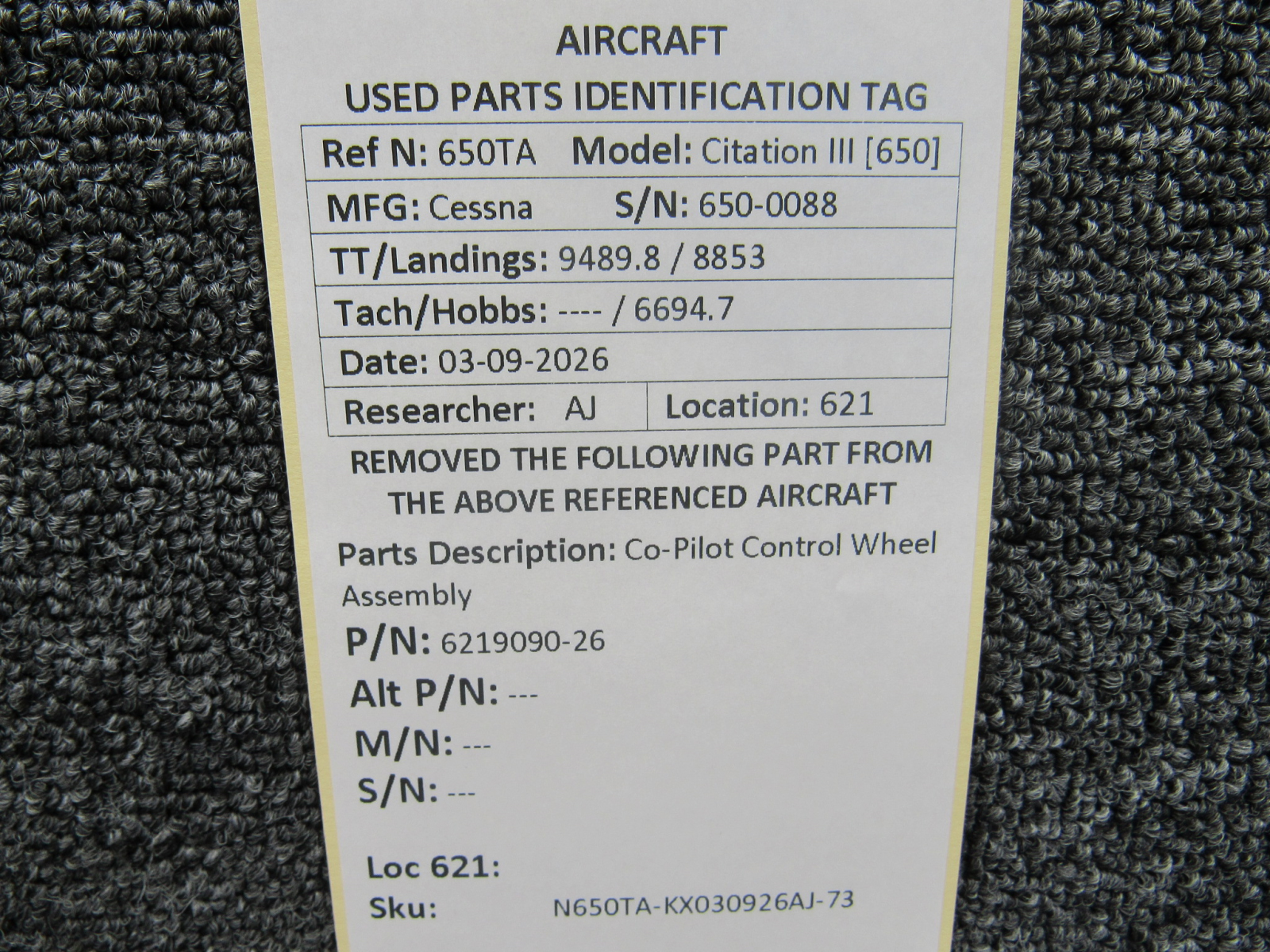 Every part is carefully inspected throughout our process and several times before it goes online. Most items are sold as-removed, just as they came off the aircraft. These parts are not functionally tested. What we do provide is clear photos, full traceability when available, pricing that reflects the as-removed condition, and a no-nonsense 90-day return window.