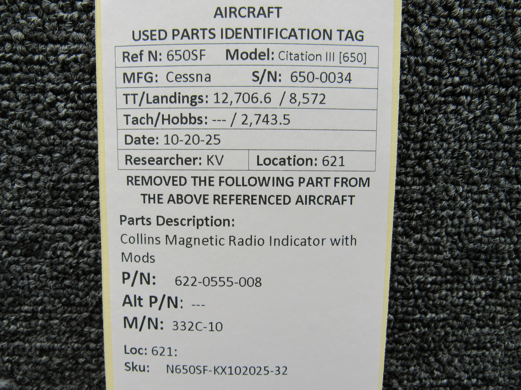 Unless specifically noted, most of our used airplane parts are sold in the condition they were removed, which means you should expect the usual signs of wear and tear.