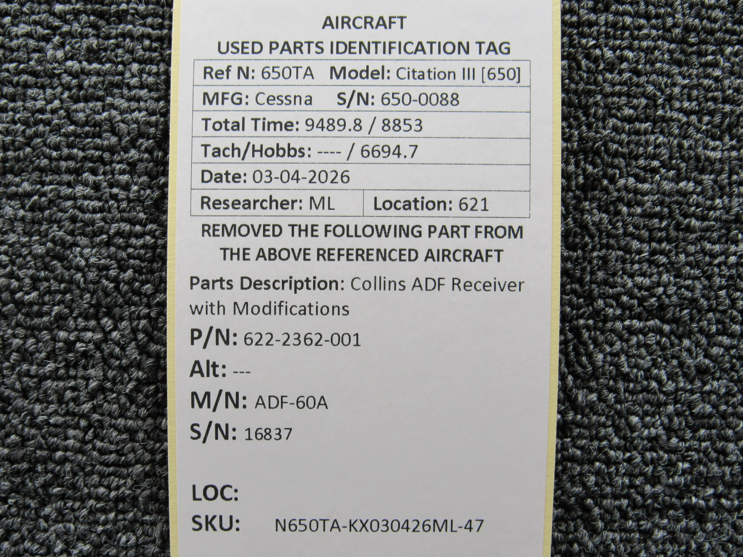 Every part is carefully inspected throughout our process and several times before it goes online. Most items are sold as-removed, just as they came off the aircraft. These parts are not functionally tested. What we do provide is clear photos, full traceability when available, pricing that reflects the as-removed condition, and a no-nonsense 90-day return window.
