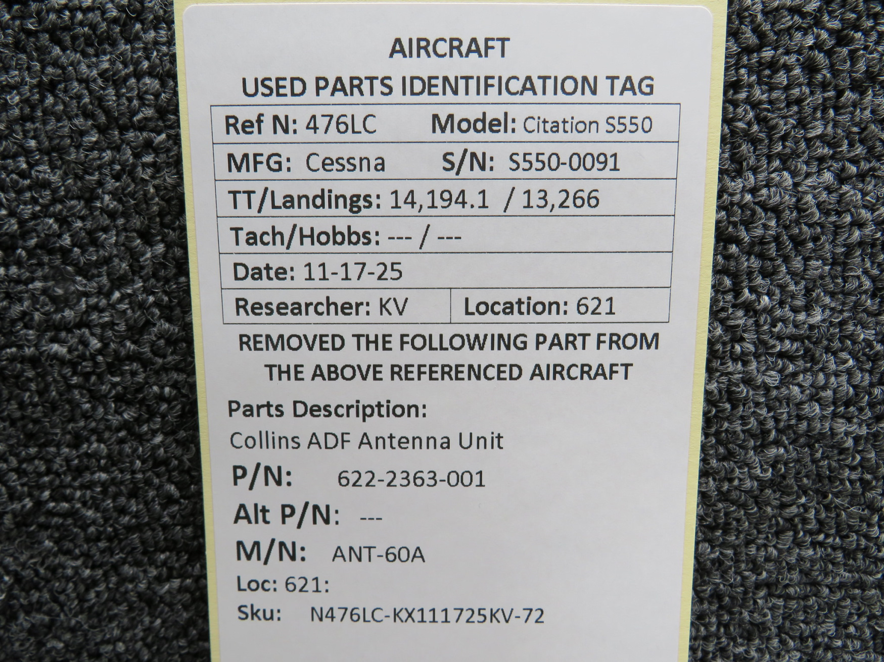 Unless specifically noted, most of our used airplane parts are sold in the condition they were removed, which means you should expect the usual signs of wear and tear.