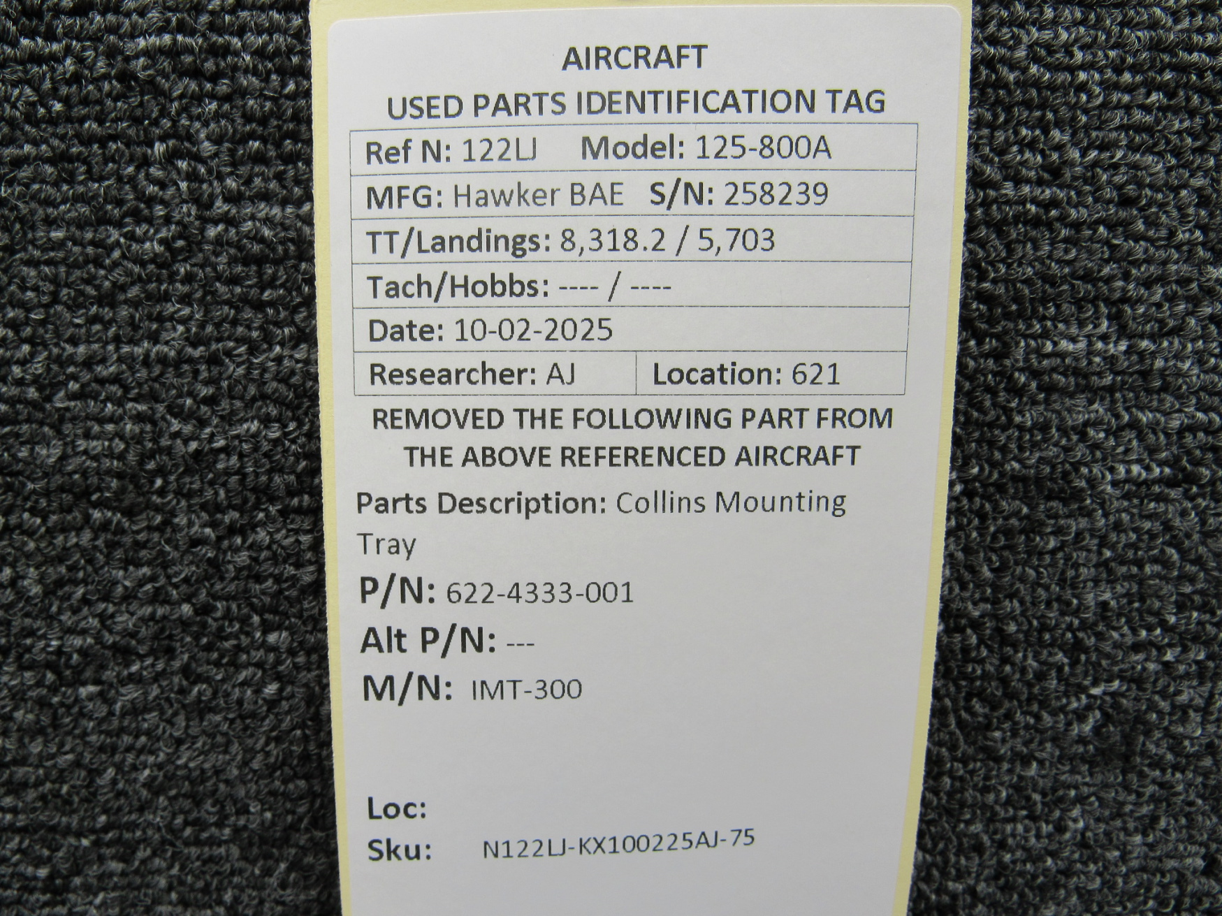 Unless specifically noted, most of our used airplane parts are sold in the condition they were removed, which means you should expect the usual signs of wear and tear.
