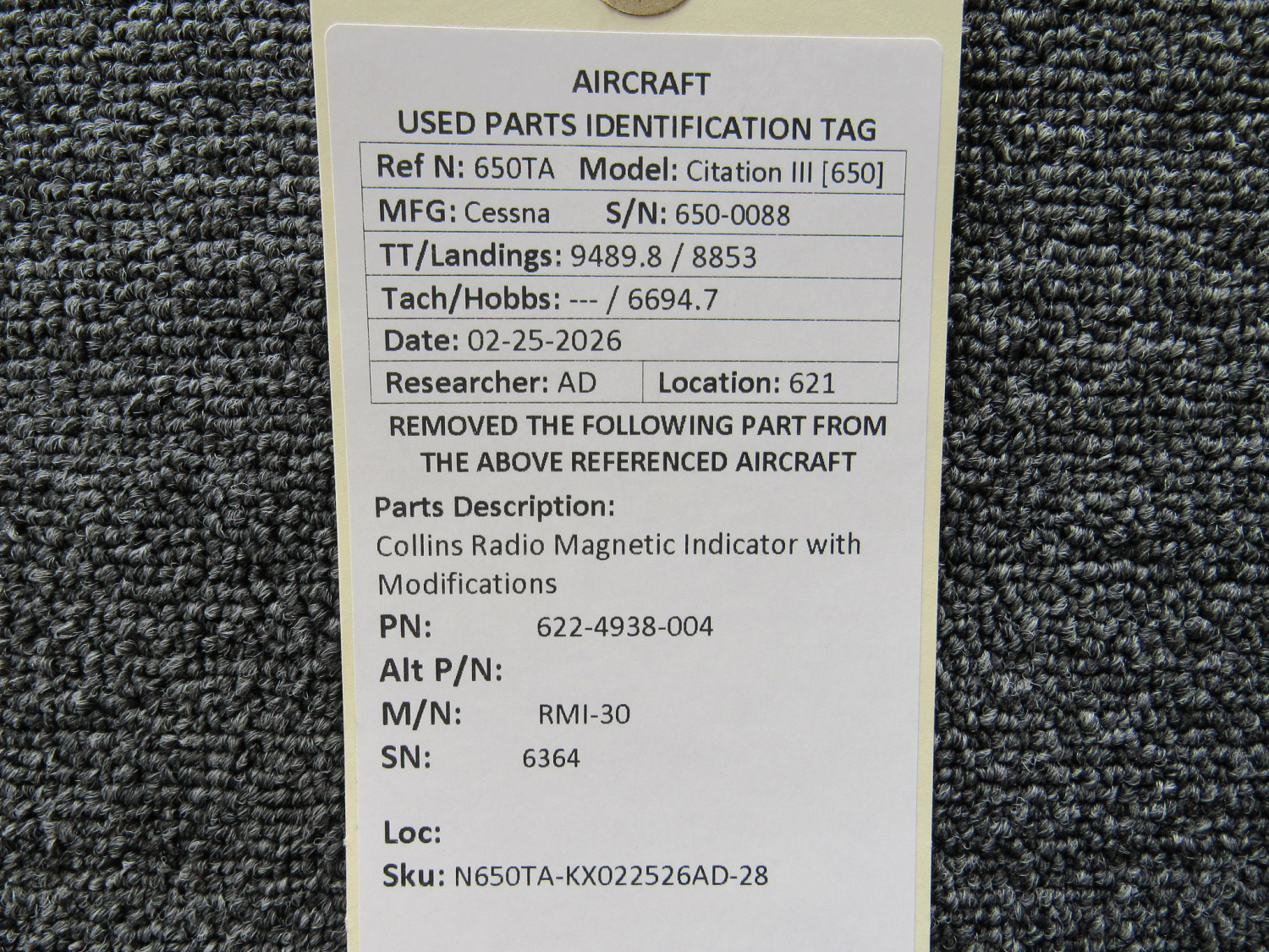 Every part is carefully inspected throughout our process and several times before it goes online. Most items are sold as-removed, just as they came off the aircraft. These parts are not functionally tested. What we do provide is clear photos, full traceability when available, pricing that reflects the as-removed condition, and a no-nonsense 90-day return window.