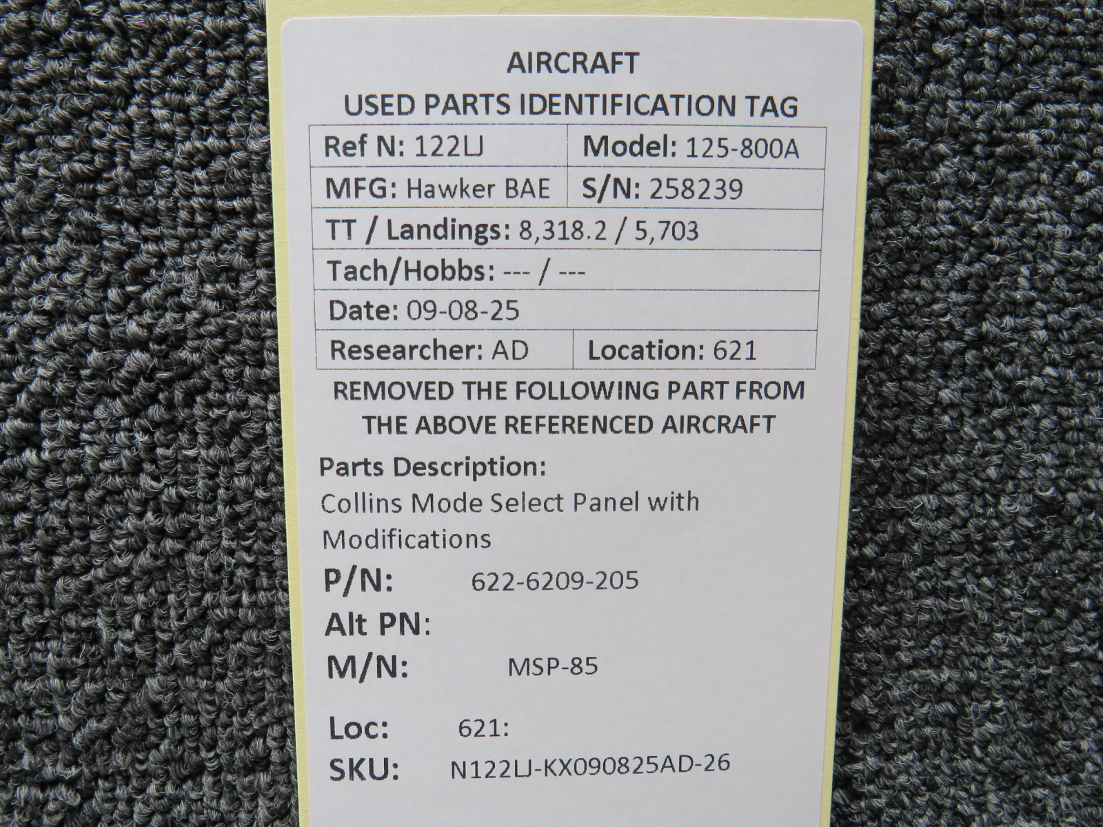 Unless specifically noted, most of our used airplane parts are sold in the condition they were removed, which means you should expect the usual signs of wear and tear.